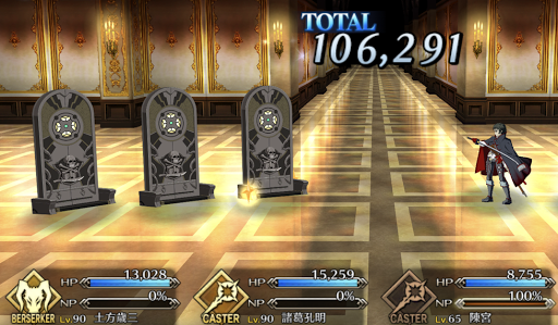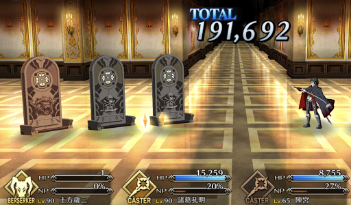 土方のHPを調整しつつ、宝具の一撃による大ダメージで短期決戦を狙う編成。陳宮の宝具を使用後に土方のガッツ発動でHPを極限まで減らし、味方からのNPチャージで宝具発動をサポートしよう。
