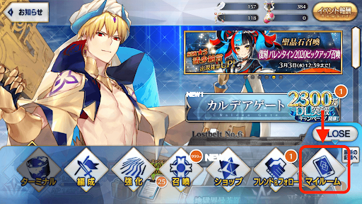 | 2 | 「マイルーム」をタップして、マイルームに行く。 | |