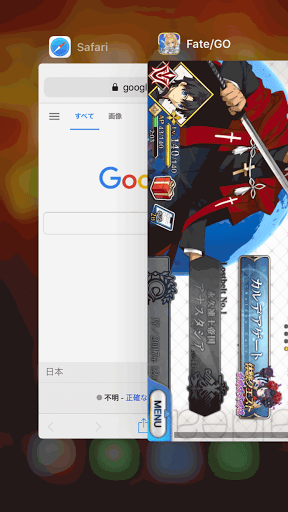 | 3 | FGO以外の起動しているアプリを横または下方向に引いて、起動しているアプリを閉じる。 |