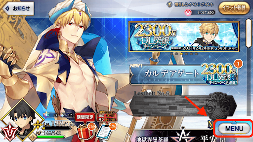 | 1 | 右下の「MENU」をタップして、メニューを開く。 | |