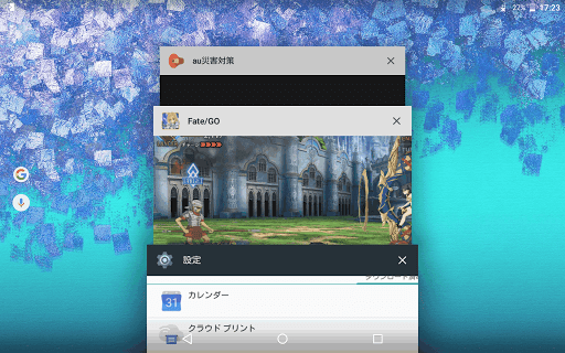 | 2 | 表示されているFGO以外のアプリの小画面を上方向に引いて、起動しているアプリを閉じる。 |
