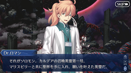 ロマニは2004年の聖杯戦争をマリスビリーと共に勝ち残ったサーヴァントで、聖杯に願い「普通の人間」になっていた。生まれながらに王として生きたソロモンが、願った新しい人生を始める間際に人理焼却を見てしまう。