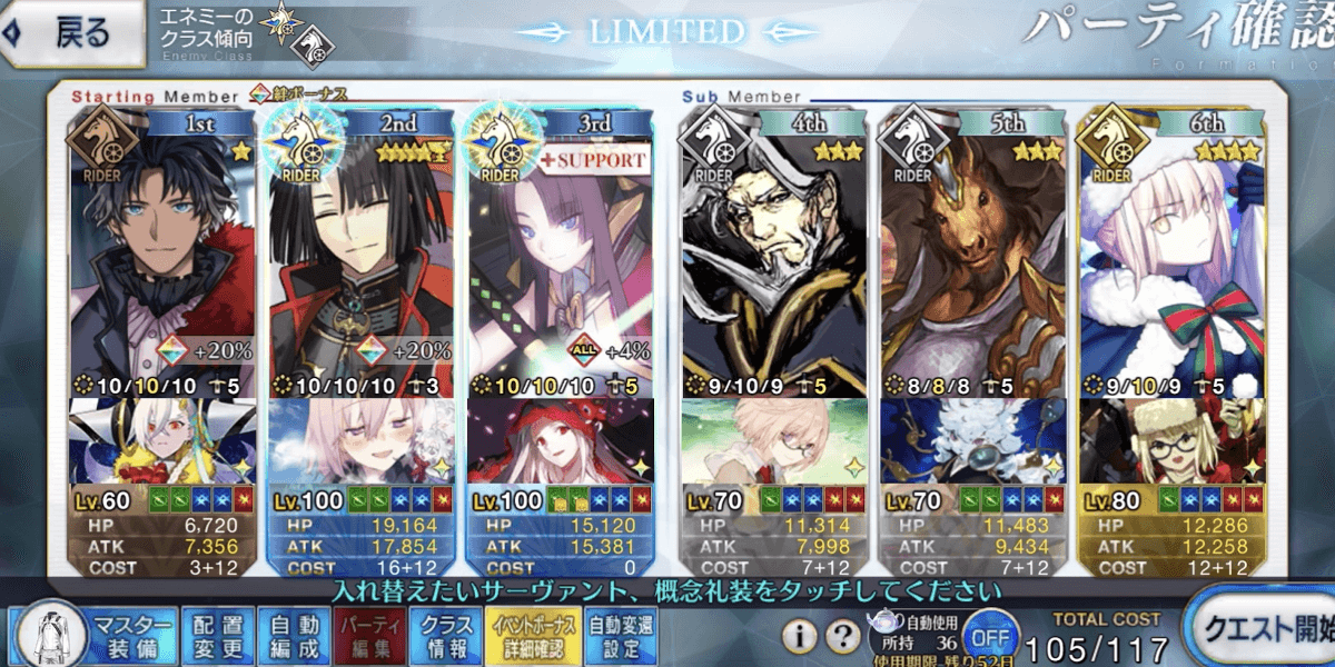 | 手順 | ・バソ&サンタオルタで支援 ・サンタオルタ+太公望+牛若で宝具使用 |