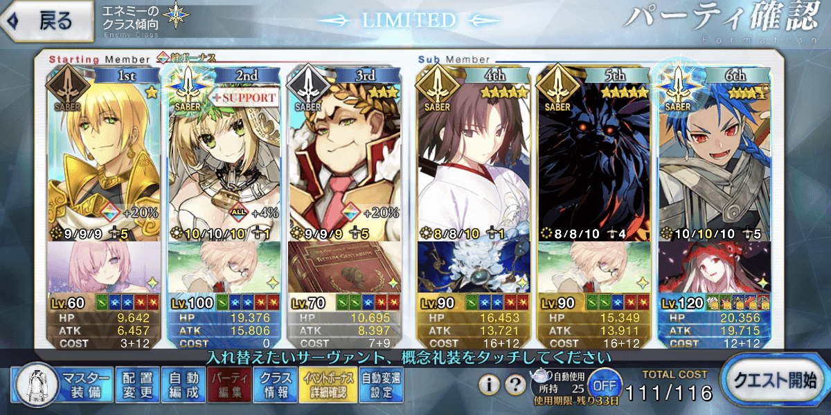 セイバー研鑽戦Lv100★★★