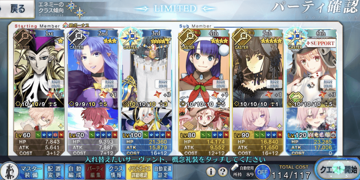 | ▼キャスター | ★★★★☆・サポメインでダメージを出す ・黒聖杯ならサポ条件は低め ・増加礼装2枚積みも可能 |