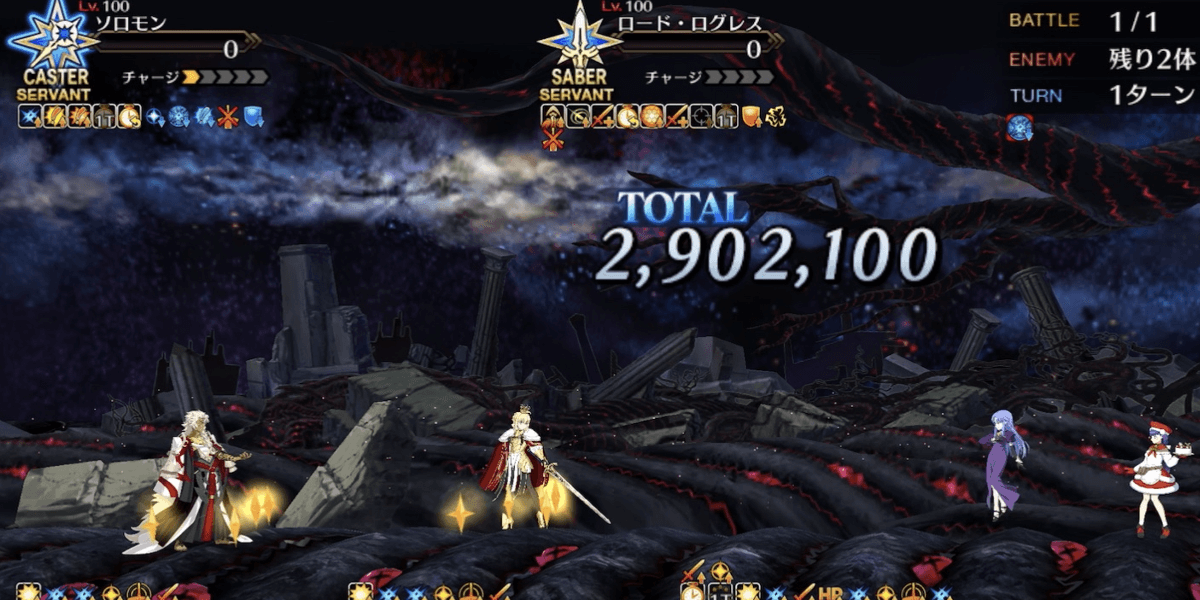| 手順 | ・ガンド利用でソロモンに単体デバフも付与 ・アマデウス&マルタ&メディアで火力支援 ・メディア→シェヘラ→任意Aでチェイン |