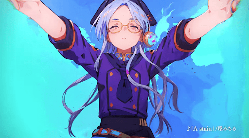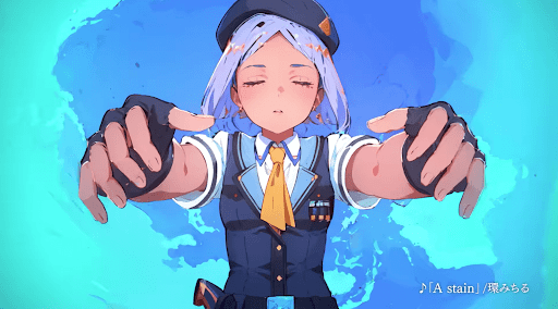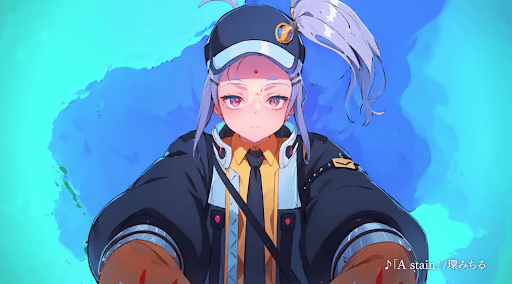 ナイフを持ったシルエットのキャラクターは、現状情報が少なく予想が困難だ。ツインテールの外見からシオンの新規立ち絵とも予想できるが、シオンのメイン武器はナイフではなく拳銃であるため、やや違和感がある。
