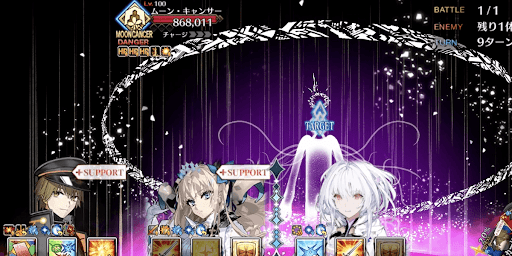ブレイク毎に全体宝具を発動するため、全体回避や無敵などの耐久手段が必須だ。ムーンキャンサーの宝具はブレイク毎に変わり、3回目は強化解除も付くが、攻撃の後に解除されるため、問題なく回避や無敵で対策できる。