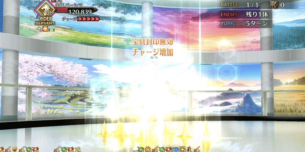 | 全体宝具は高いHPで受ける帝王パーシマの宝具は全体無敵貫通攻撃対粛正防御があるなら気にしなくてOK |