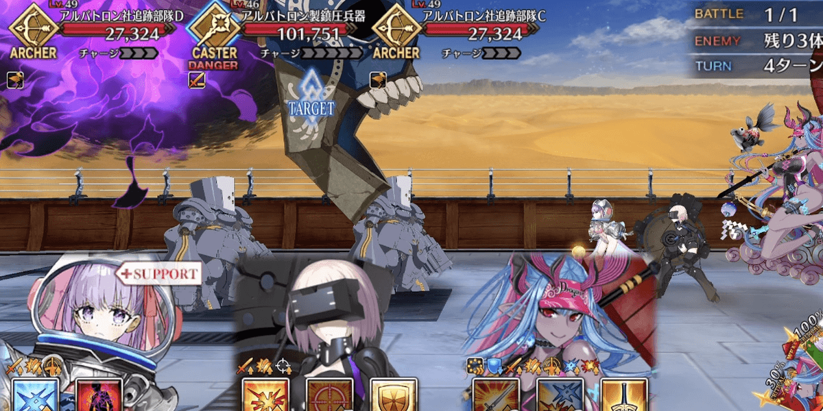 | 簡易攻略情報 | ・8ターンの耐久でクリア ・最速で進めるなら全体宝具3連射 |