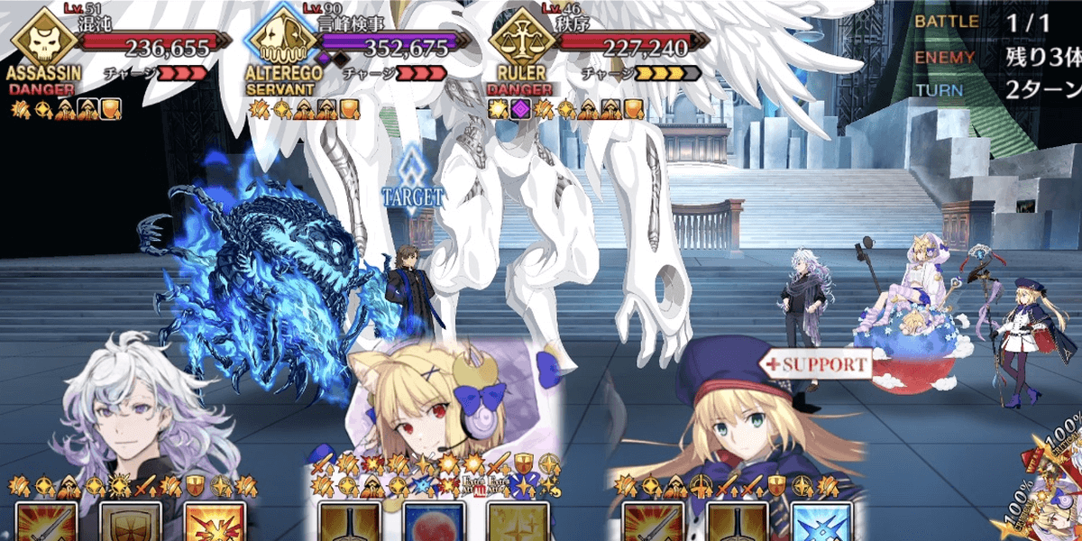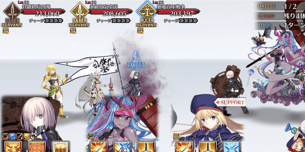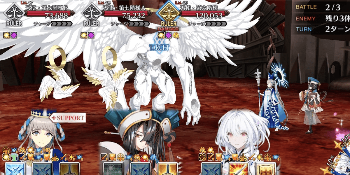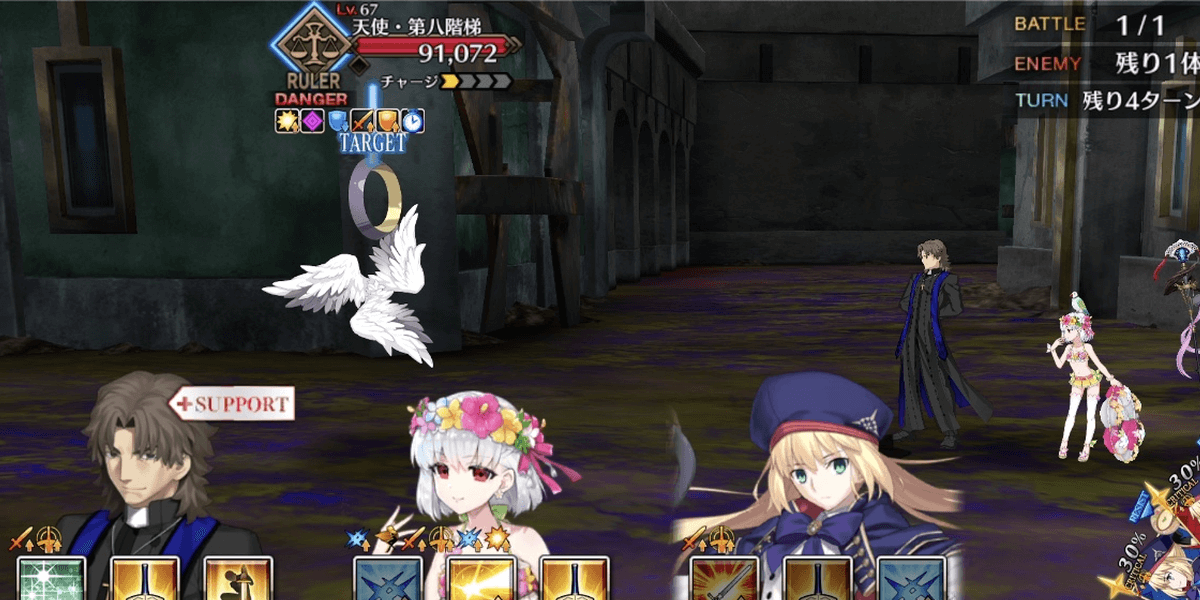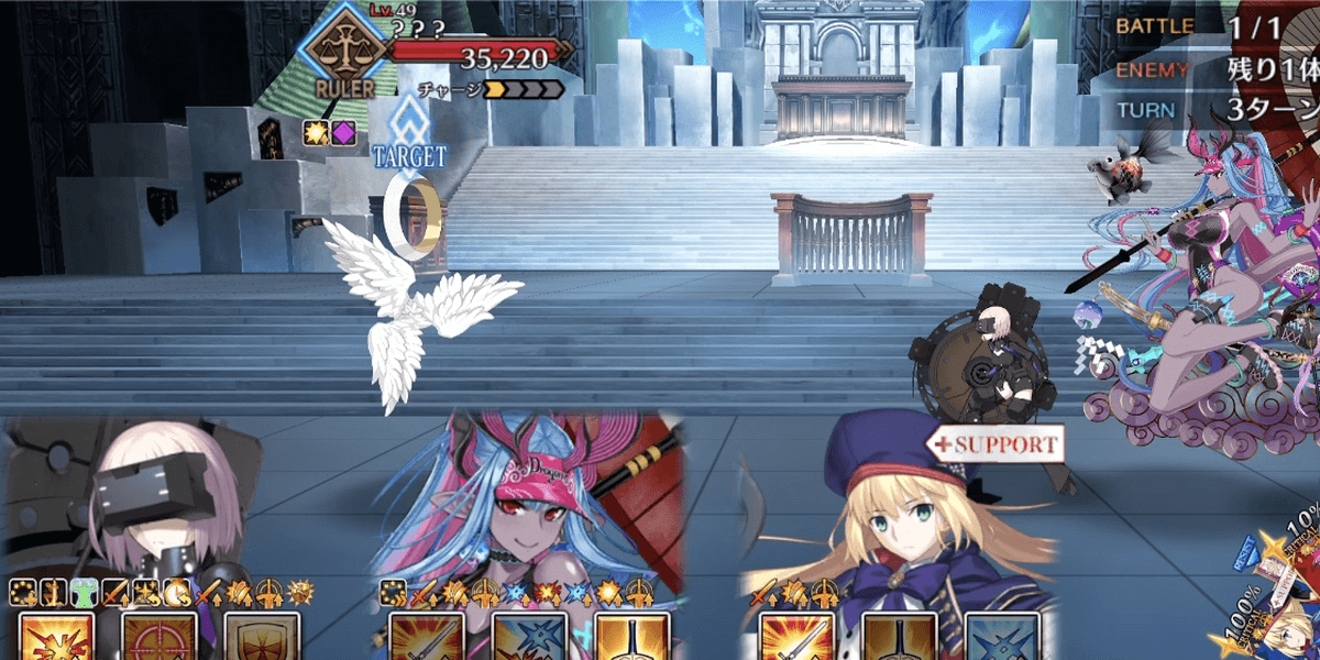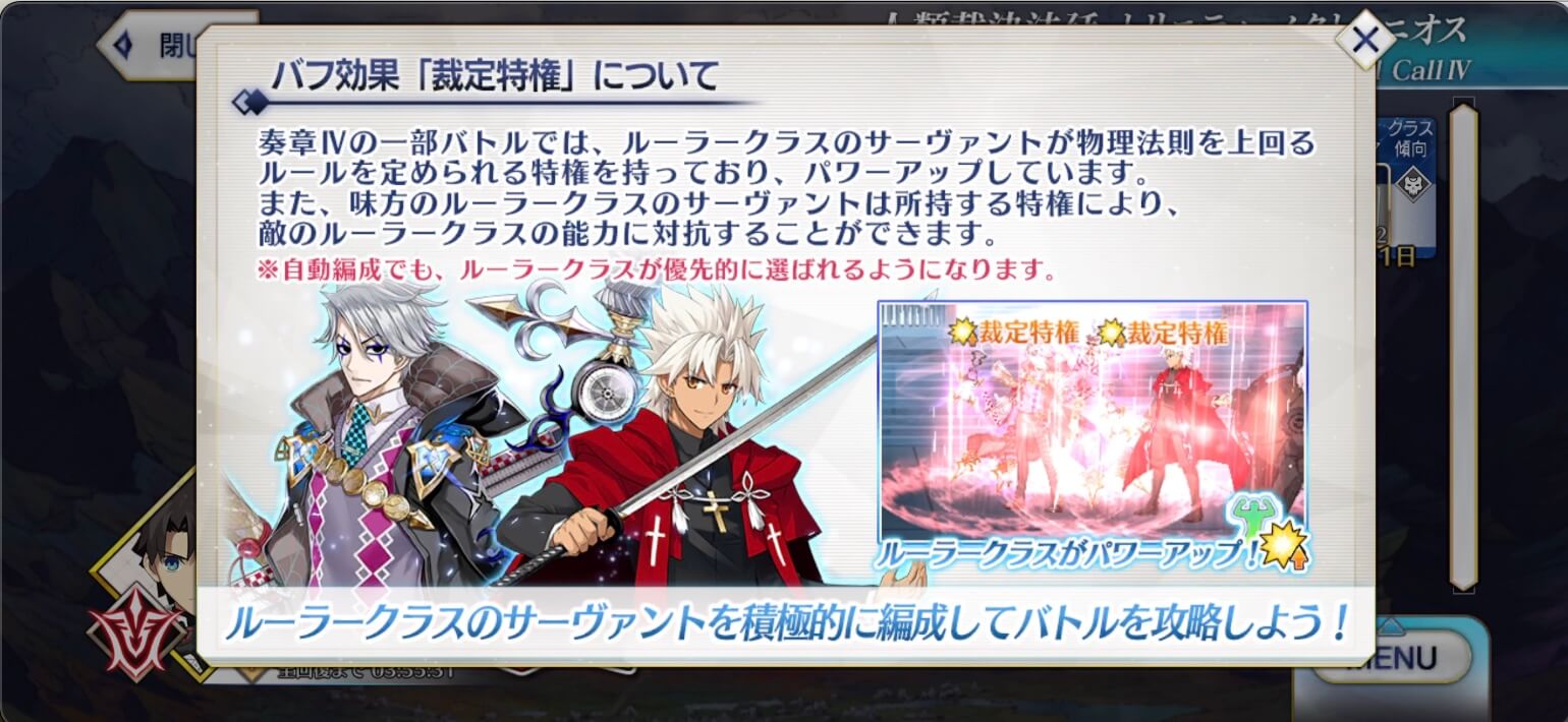 奏章4では、マシュとルーラークラスに支援ギミックが付与され強化状態で戦える。特にルーラークラスは、厄介なデバフに対抗する手段も無条件で与えられているため、高難易度ではルーラークラスメインで戦うのがおすすめだ。