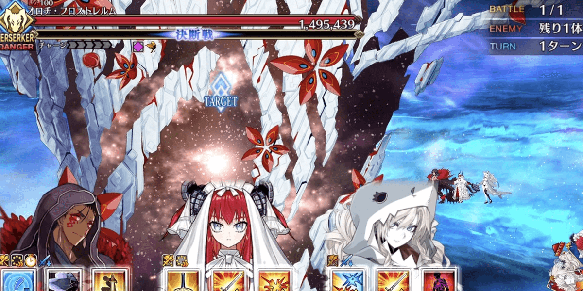 200%の人類の脅威特攻宝具が刺さり、回避を解除できるエルキドゥは、オロチレイド最適解のアタッカーだ。エルキドゥをグランドに選定すれば,120★★★でも1ターン周回可能だ。
