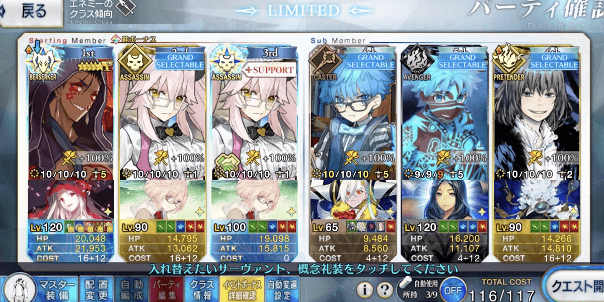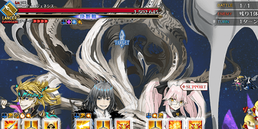 | ギミック | ・開幕チャージMAX&宝具威力アップ(3回) ・敵味方共に宝具時に自身のHP減少(3回) ・ボスから見てライダーに攻撃優位 ・ムーンキャンサーに防御劣位 |