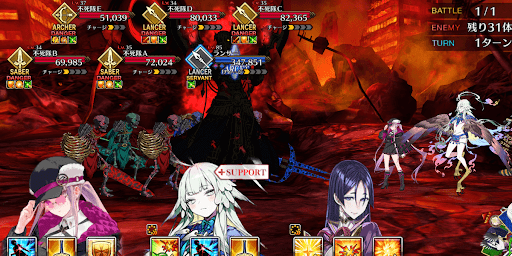 ボスを倒せばクリアなため、ボスに有利なセイバーの単体宝具でボスを狙おう。不死隊はフィールドにいる間敵全体にバフを付与するが、ボスには問題なくダメージが入るため無視して良い。