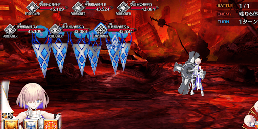 | マシュの全体攻撃宝具で一掃すればOK1,2ターン開始時にマシュのNP100%増加 |