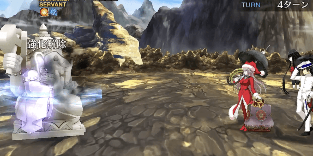 ガネーシャがスキルや宝具で無敵を付与した場合は、サンタ婦長(ナイチンゲールサンタ)のスキル1で解除しよう。ただし、サンタ婦長で解除できるのは最新の強化1個であるため、敵が無敵付与以降に強化状態を付与している場合は無駄打ちに終わるので1ターン静観推奨。