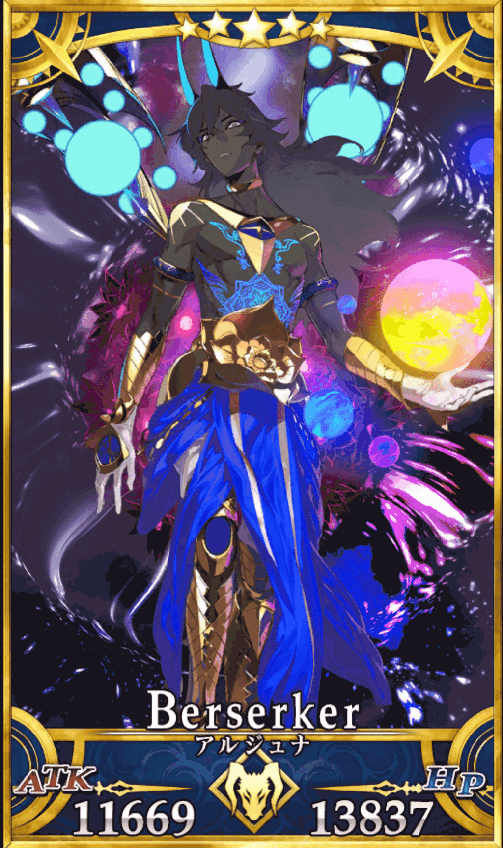 絵師がpakoさん、声優が島崎信長さん、という特徴からアルジュナ関連のサーヴァントであると想定されている2部のバーサーカー。黒いイメージが特徴的であるため、アルジュナの別人格「クリシュナ(黒)」なのでは、という声が多い。