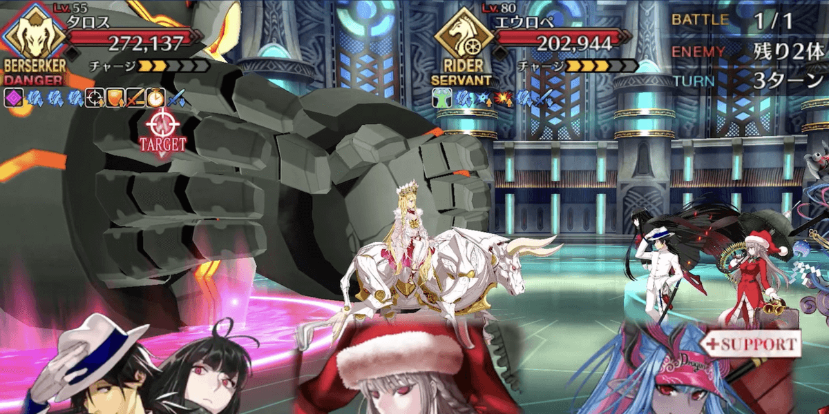 エウロペ戦は、サポート枠から有力なアタッカーを借りて、自前で宝具回転を補助してゴリ押しクリアを狙える。クリア目安は4ターンだ。