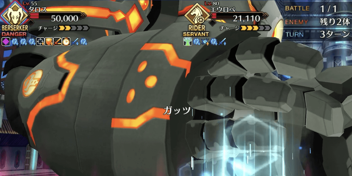 | 注意点 | ・タロスを倒すとエウロペに永続宝具封印 ・タロスは常に全体攻撃 ┣スキルで必中を付与することがある ┗開始時ギミックでガッツや毎T回復を付与 ・エウロペは常に魅了無効 |