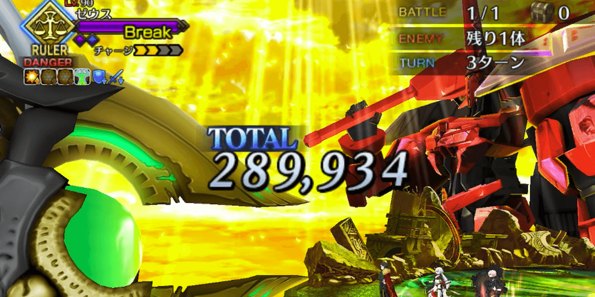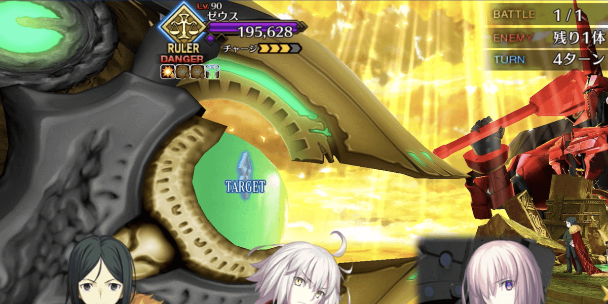 開幕から3ターンで上下のユニットを撃破したうえで、ゼウス本体のブレイク1回目を狙おう。上→下→本体の順で各ターンでそれぞれ撃破していく必要がある。ユニットは、水着ジャンヌオルタ通常攻撃や、マシュのバスタークリティカルで撃破していこう。