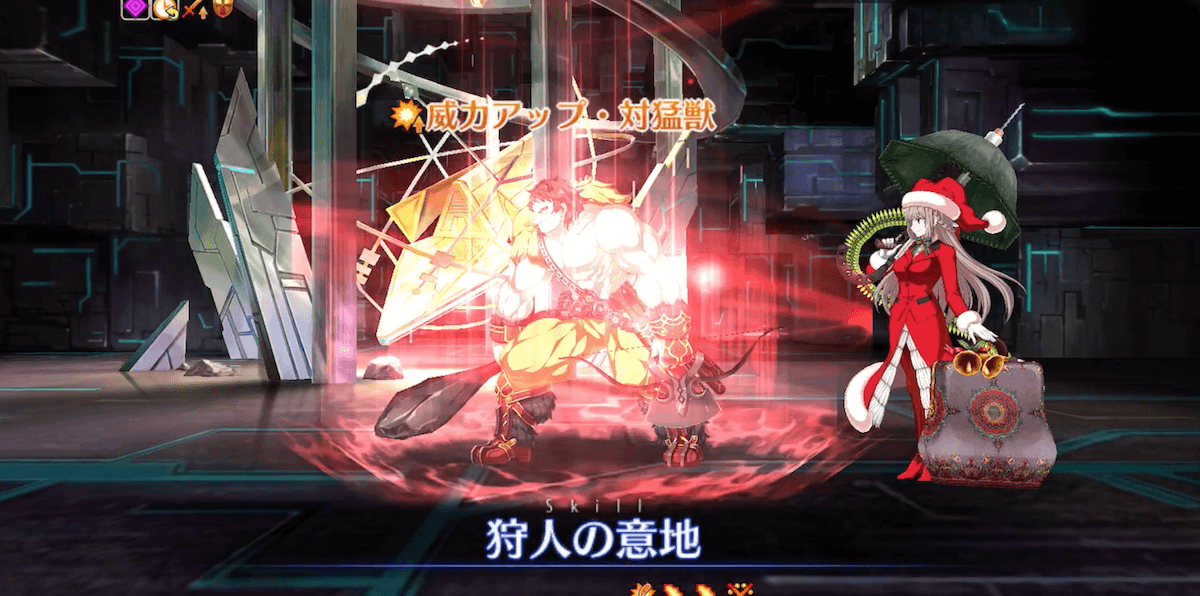 | 【狩人の意地】登場時ギミック ・自身に猛獣特攻を付与(100%/永続) ・スター発生率アップ(100%/永続) |