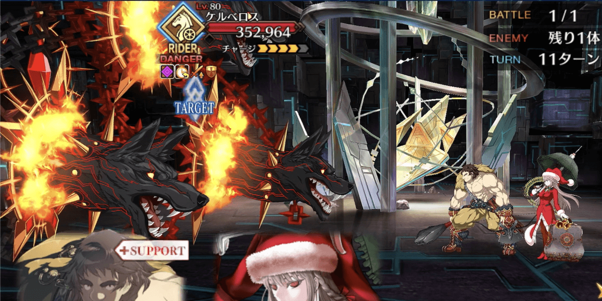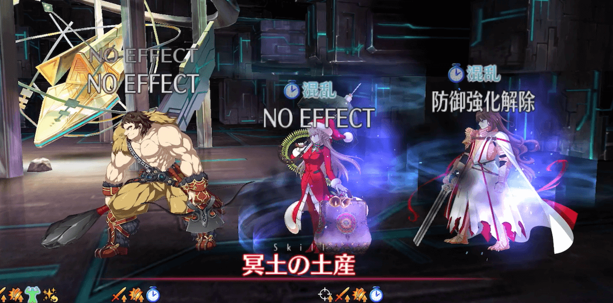 超人オリオンの宝具を使用したのち3ターンの間に、ケルベロスのゲージブレイクを狙っていこう。ブレイクギミックで混乱状態を付与されるが、宝具の弱体無効によりガードできる。
