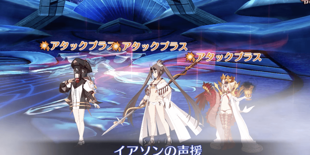 毎ターン開始時に「イアソンの声援」による味方全体への支援効果が発動する。ただし、支援内容はランダムなので「イアソンの声援」を当てにした攻略はおすすめではない。