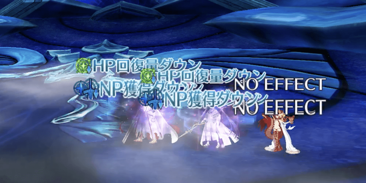 なお、解除されるバフは各1個で、最後に付与された攻撃&防御強化が対象になる。バフを複数付与できるパーティで固めると、無敵回避などの肝心なバフを解除されにくい。2部5章アトランティスの最終戦であるため、抵抗がなければ令呪使用も検討して良い。