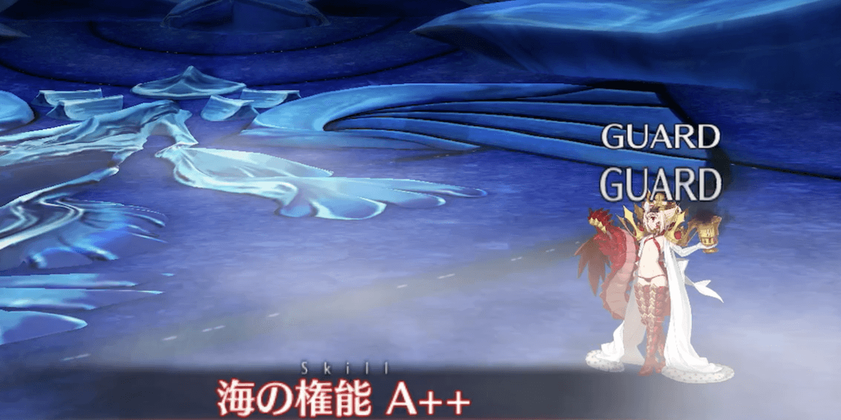 | スキル | 【海底宮殿の秘宝】 ・自身に無敵付与(2回/3T) ・宝具威力をアップ(3T)【海の権能】 ・マスター側全体の攻撃強化状態を解除(1個) ・防御強化状態を解除(1個) ・NP獲得量をダウン【水の権能】 ・敵側全体の弱体状態を解除 ・弱体無効を付与(3回/3T) ・HPを回復(10,000) |