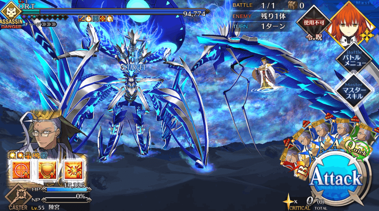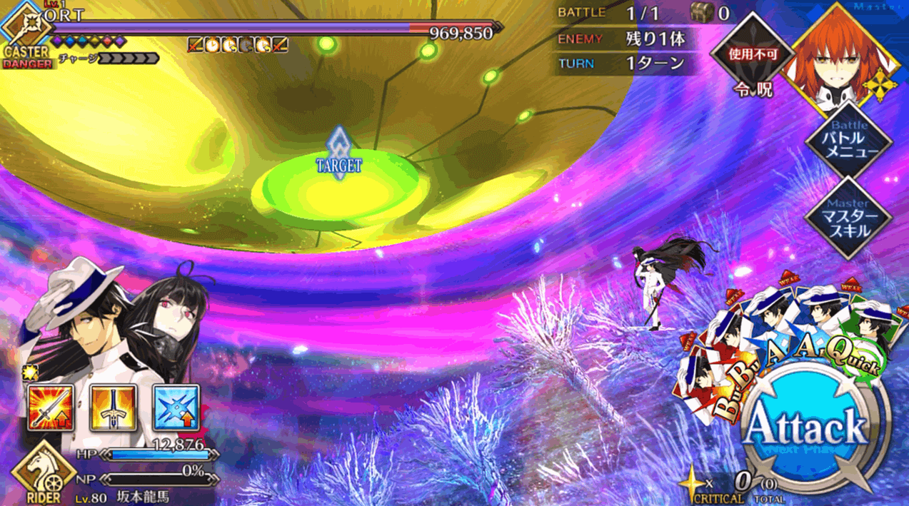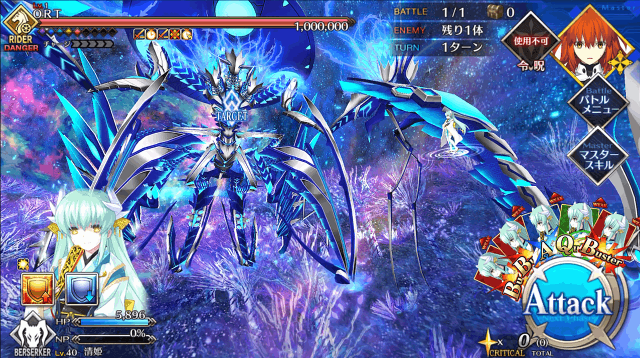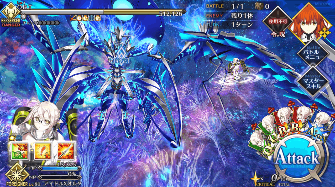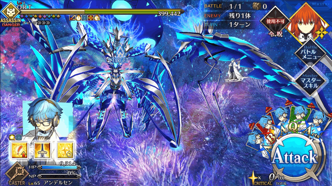 そんな長く続いたORT戦のフィナーレ戦ですが、アルターエゴの徐福ちゃん単騎で攻略可能。「外宇宙最強生物」が小娘一人に倒されていいんですか?って感じではありますが、ここに至るまでにいろいろなことがあったので良いのでしょう。