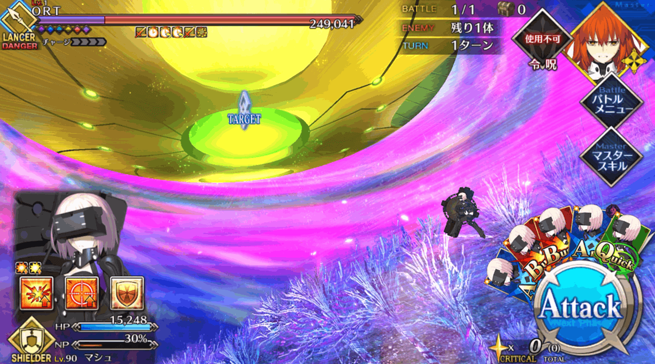 録画した動画を見返しつつ、この記事を書いているのですが、出撃解禁されたマシュを投入していない時点でやはり集中力が切れてますね。このゲージを含めるとあと2本で長かったORT総力戦も終わるので、出し惜しみせずに星4配布を投入すれば良かったと反省します。