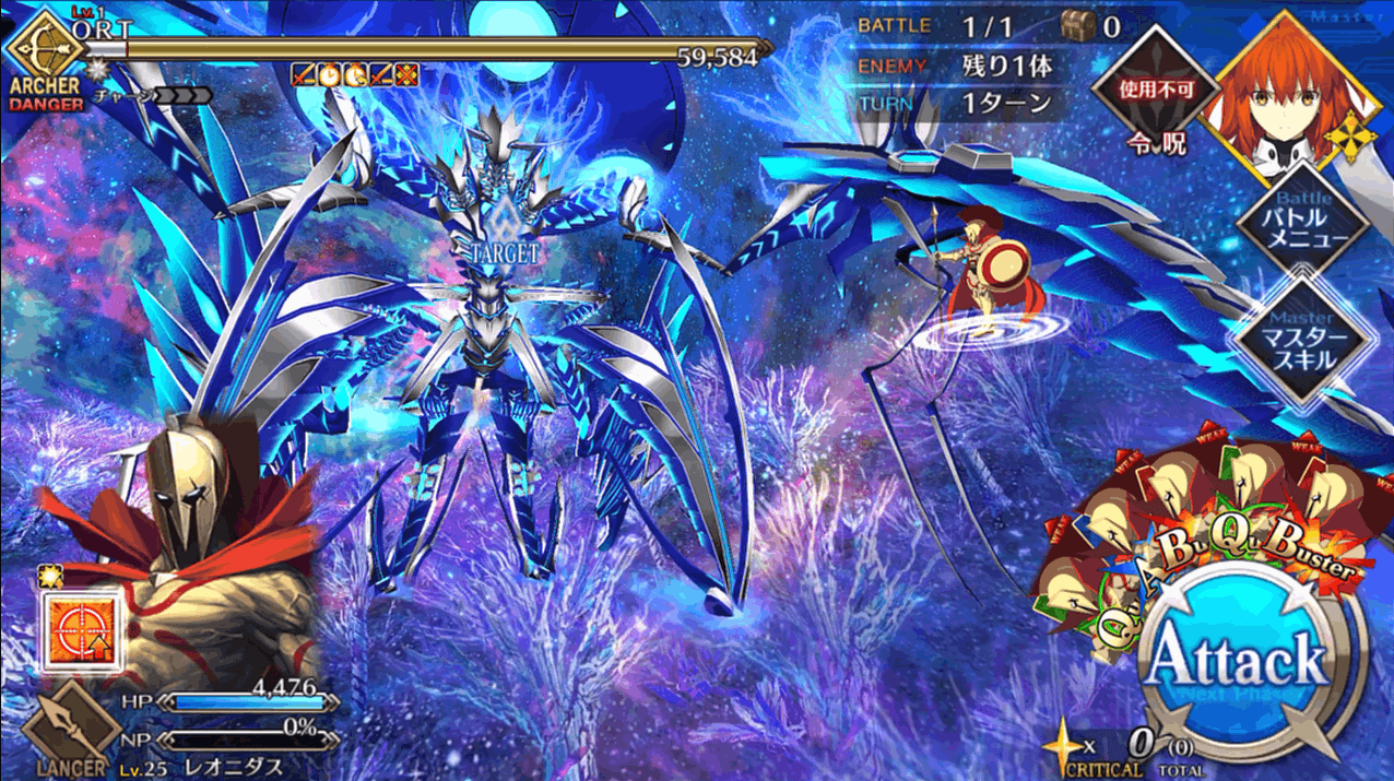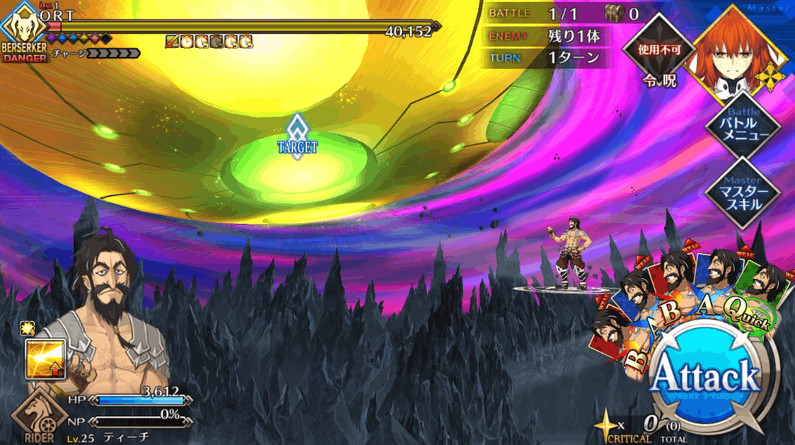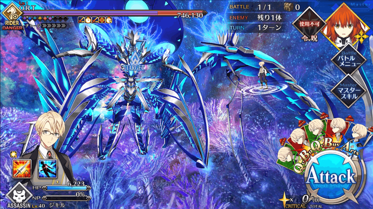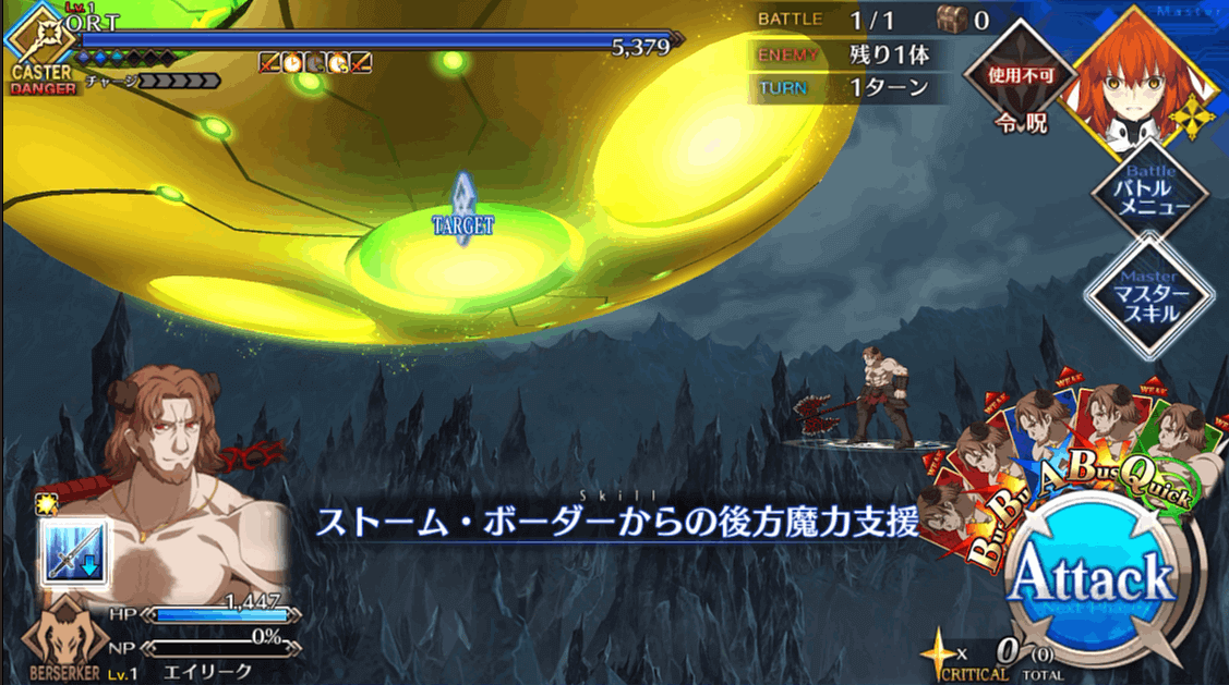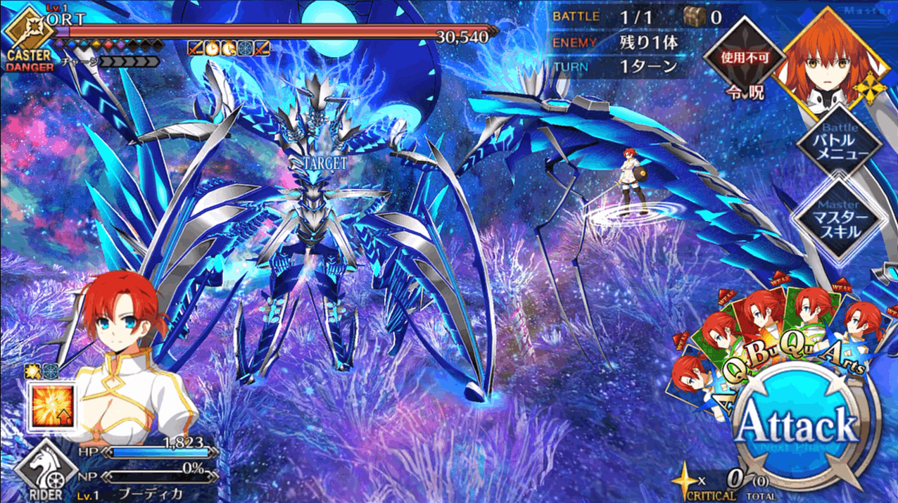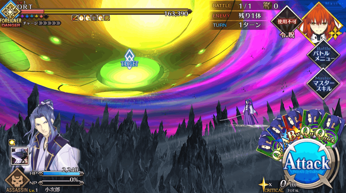 | 1 | ・スキル1使用 ・BQAで攻撃 |