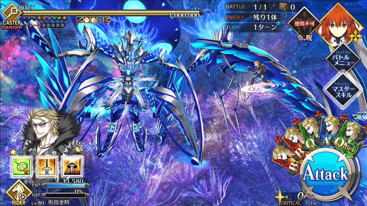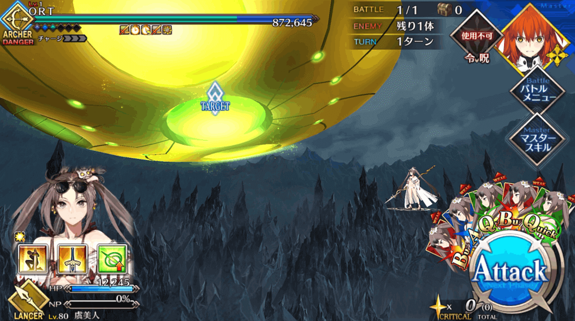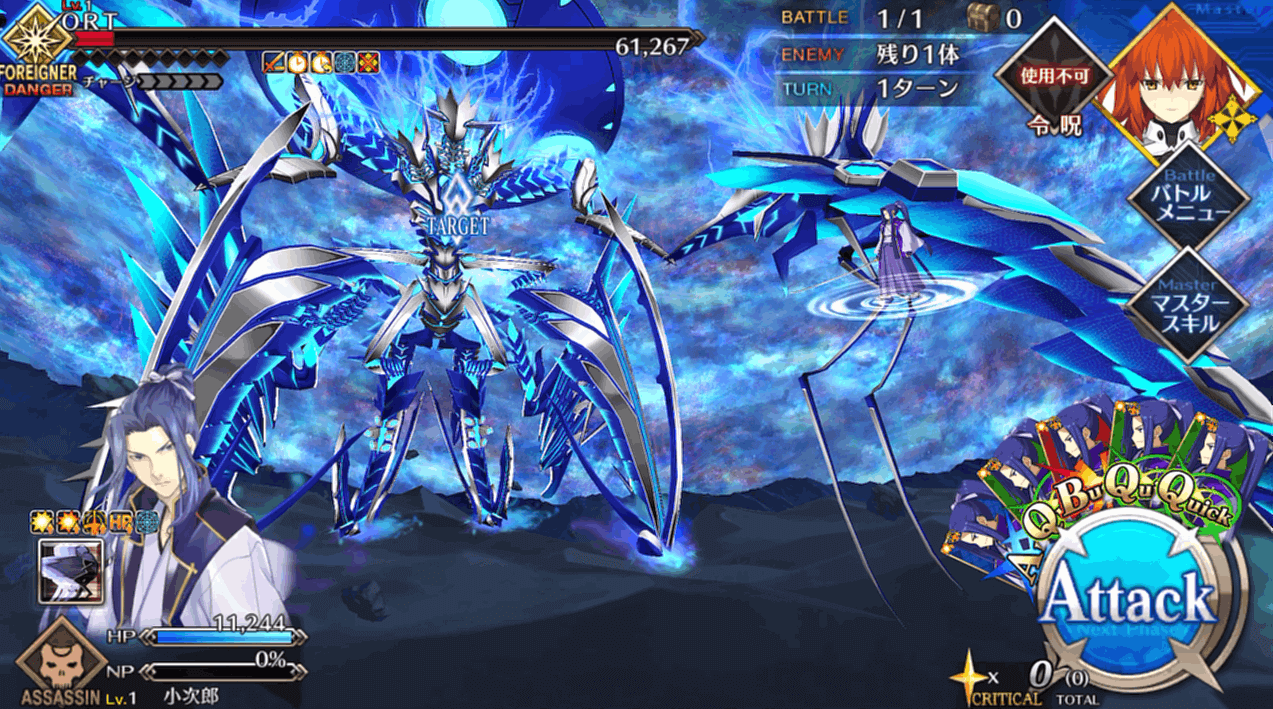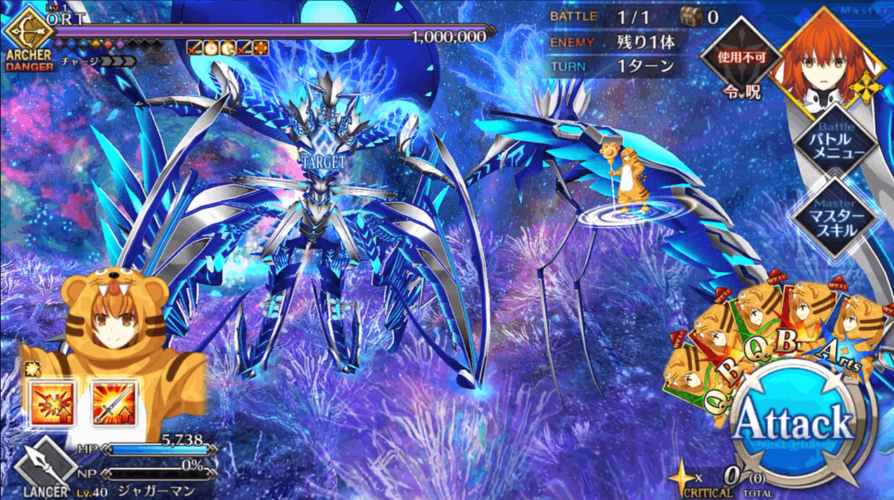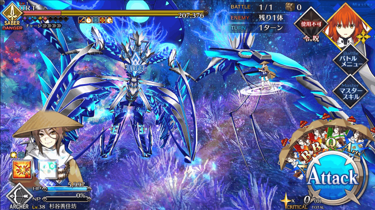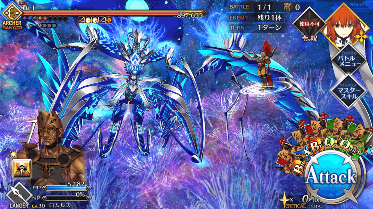 | 2 | ・スキル1&3使用 ・マスタースキル1&2使用 ・宝具QBで攻撃 |