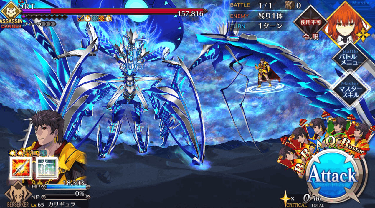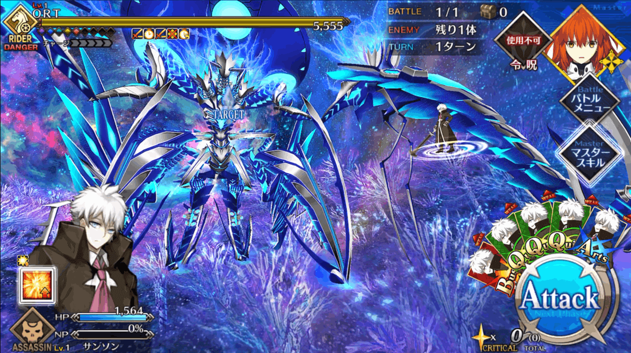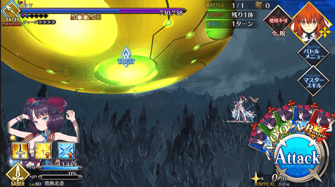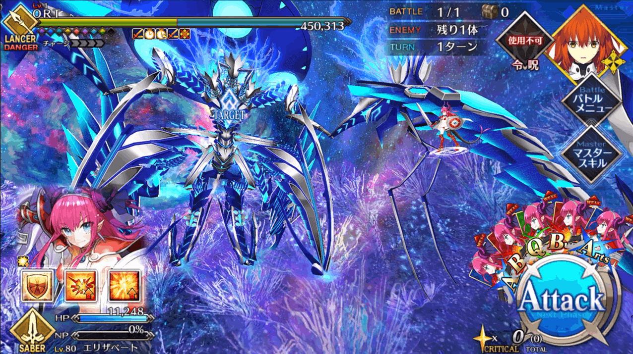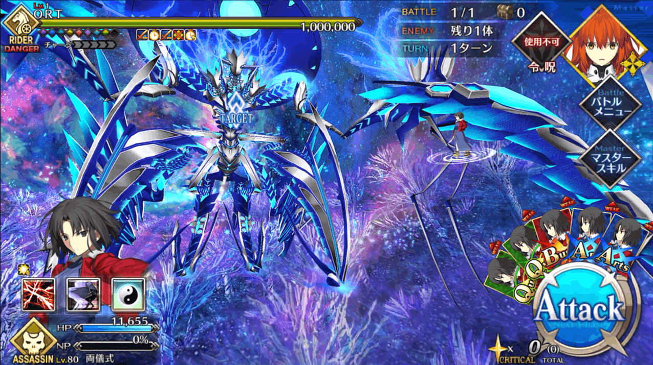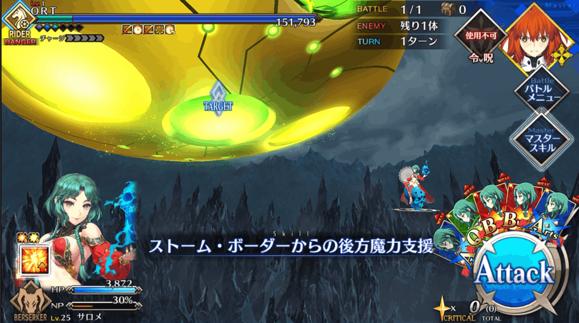 | 2 | ・スキル1&3使用 ・マスタースキル1&2使用 ・宝具QBで攻撃 |