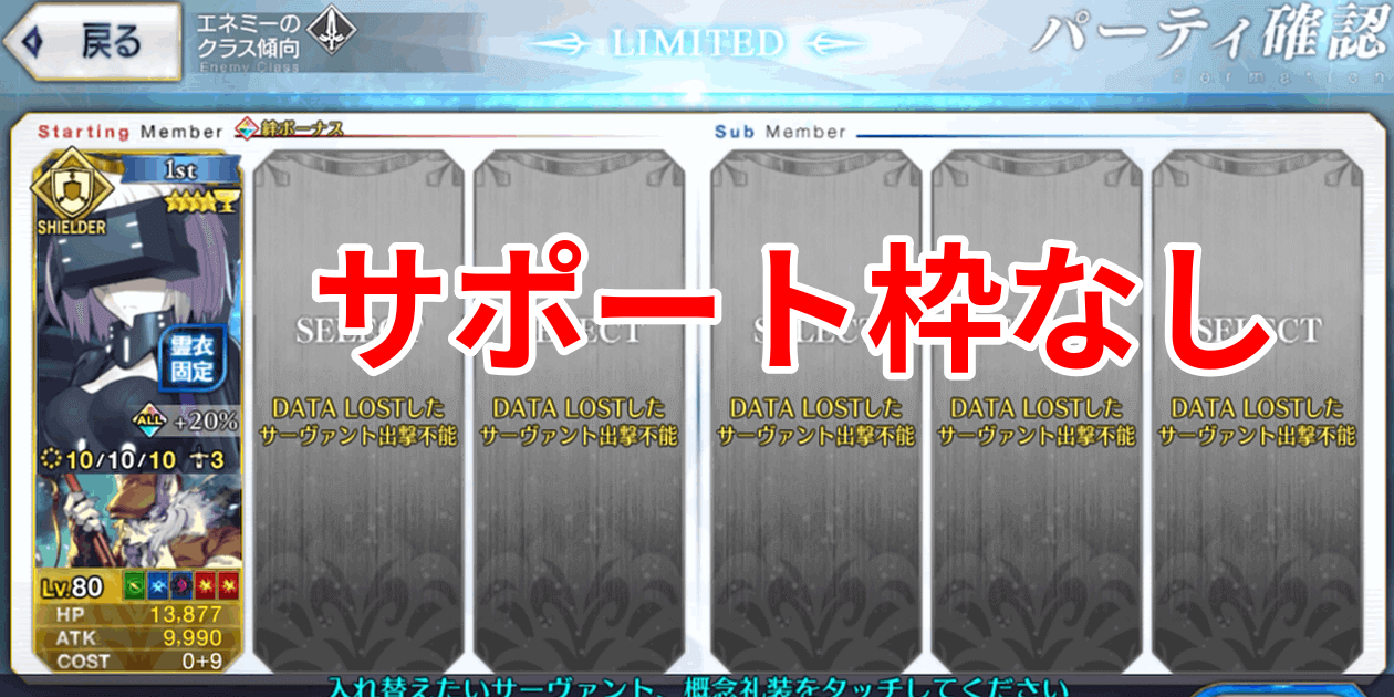 | 手持ちサーヴァントのみ出撃可能 |