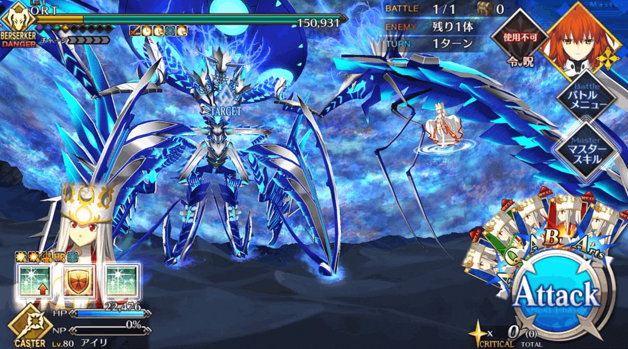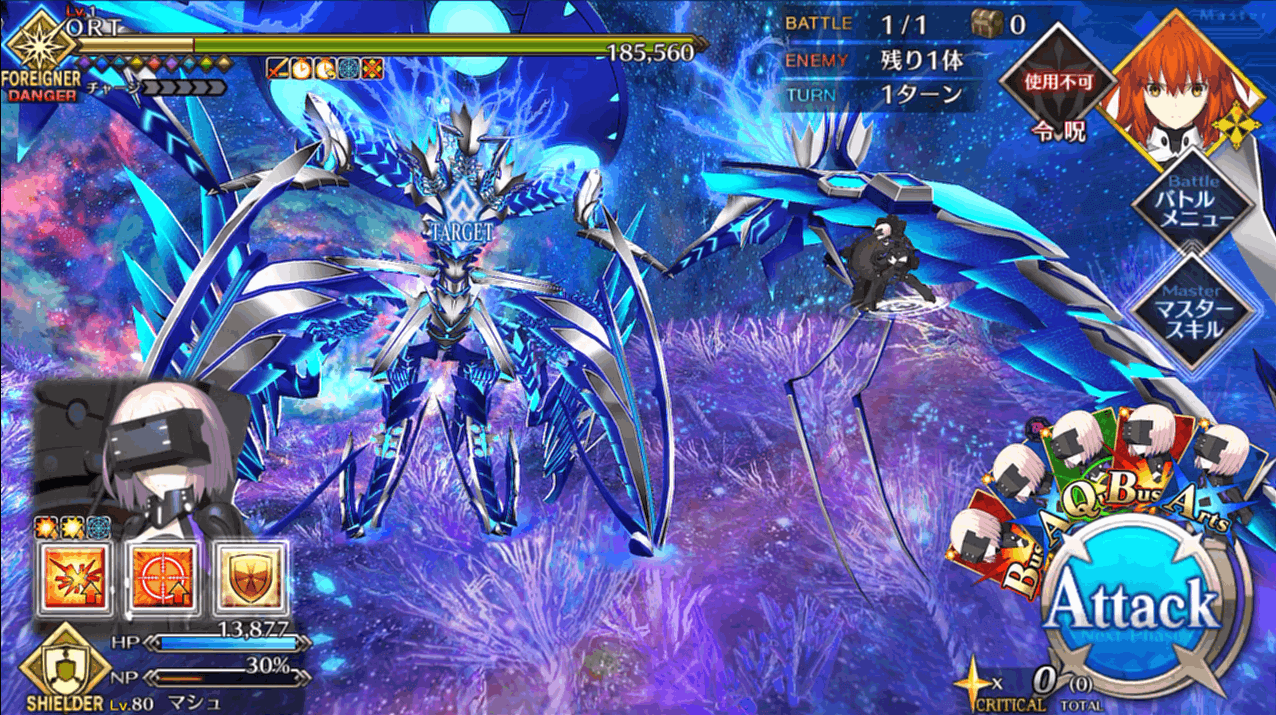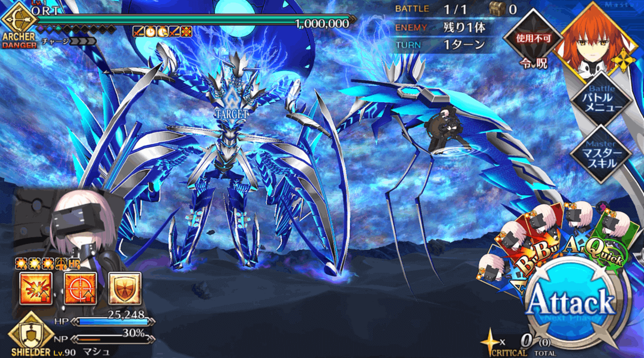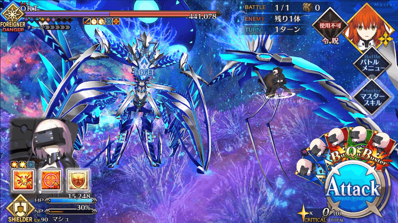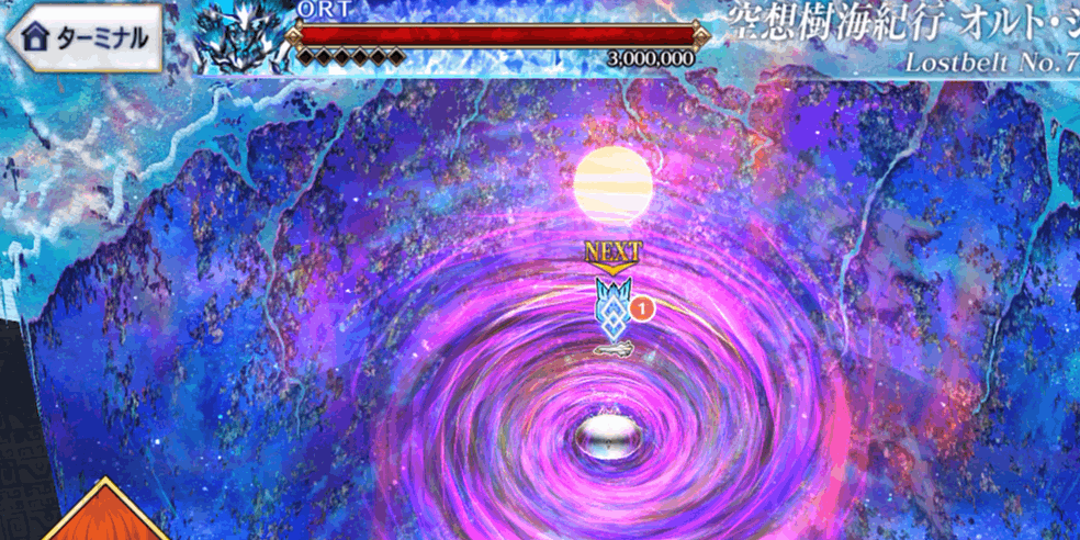 HP300万のORTを相手にする最終戦はコンテが可能になるので、霊脈石や聖晶石のゴリ押しでも突破可能。ギミックで減少する分を除いてもHP200万程度は自力で削る必要はありますが、出撃制限も解除されて好きな手持ちを編成できるので、ナウイミクトランまで攻略してきたマスターなら多くともコンテ1~2回で突破できるでしょう。