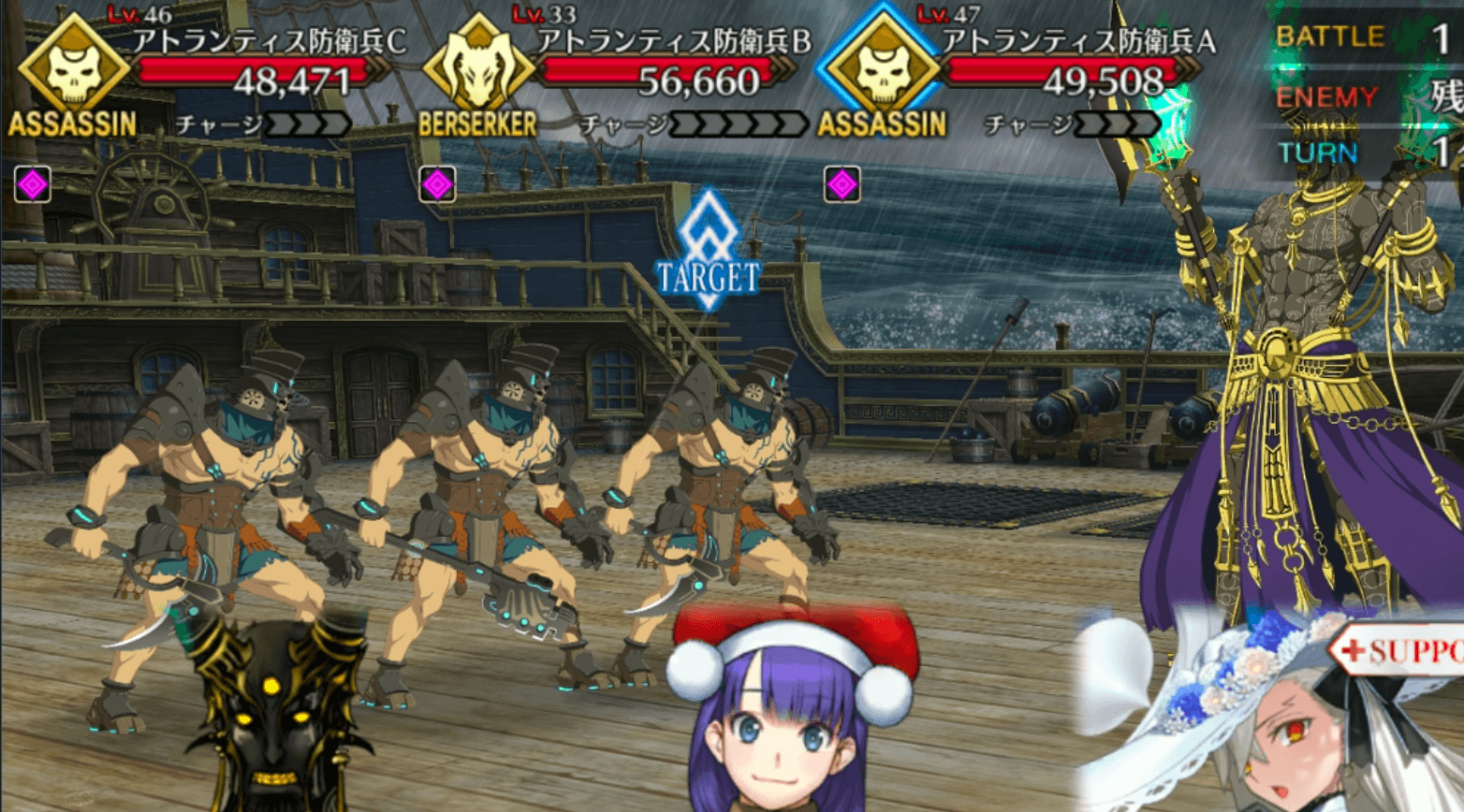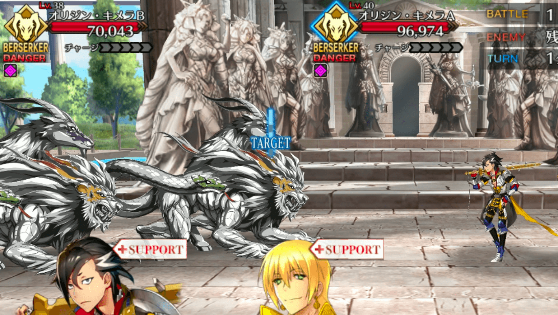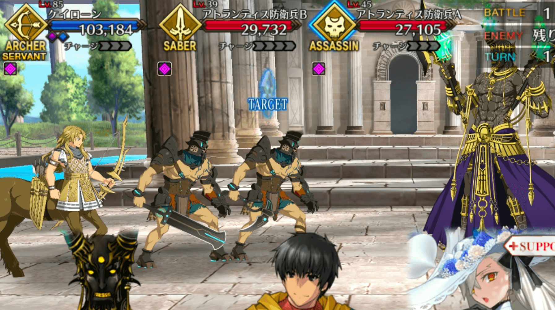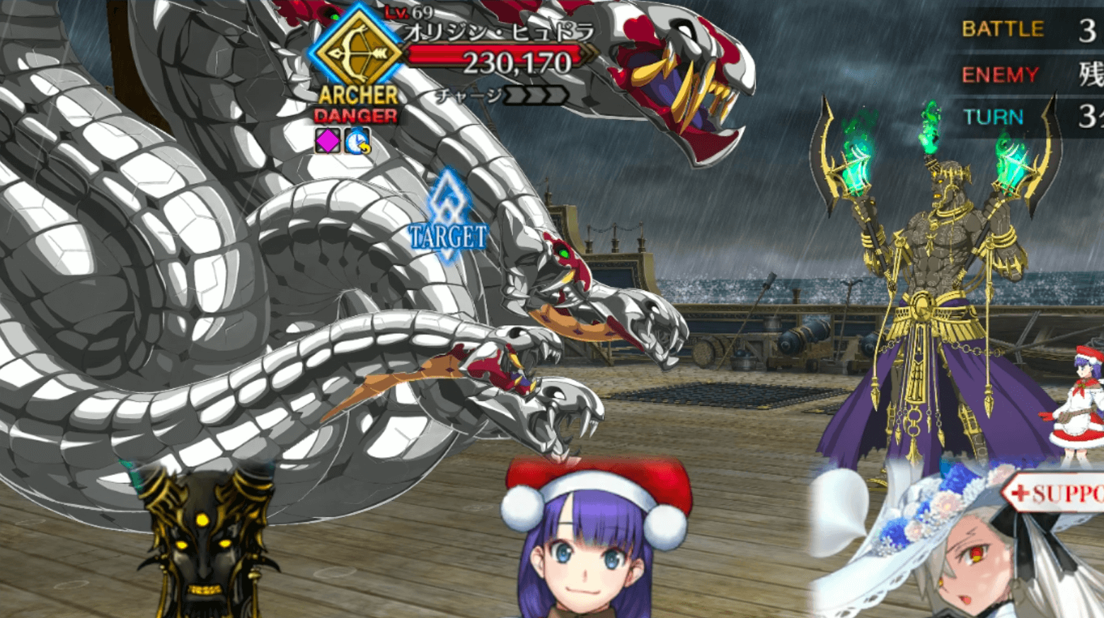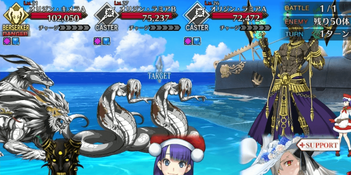 敵の全滅でクリア。ポセイドンは毎ターンチャージが1増加する。ケイローンは生存中、さまざまなバフを全体に配り、ブレイク後は自身にガッツを付与するため非常にしぶとい。