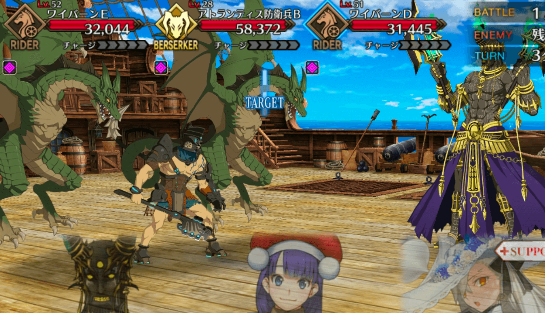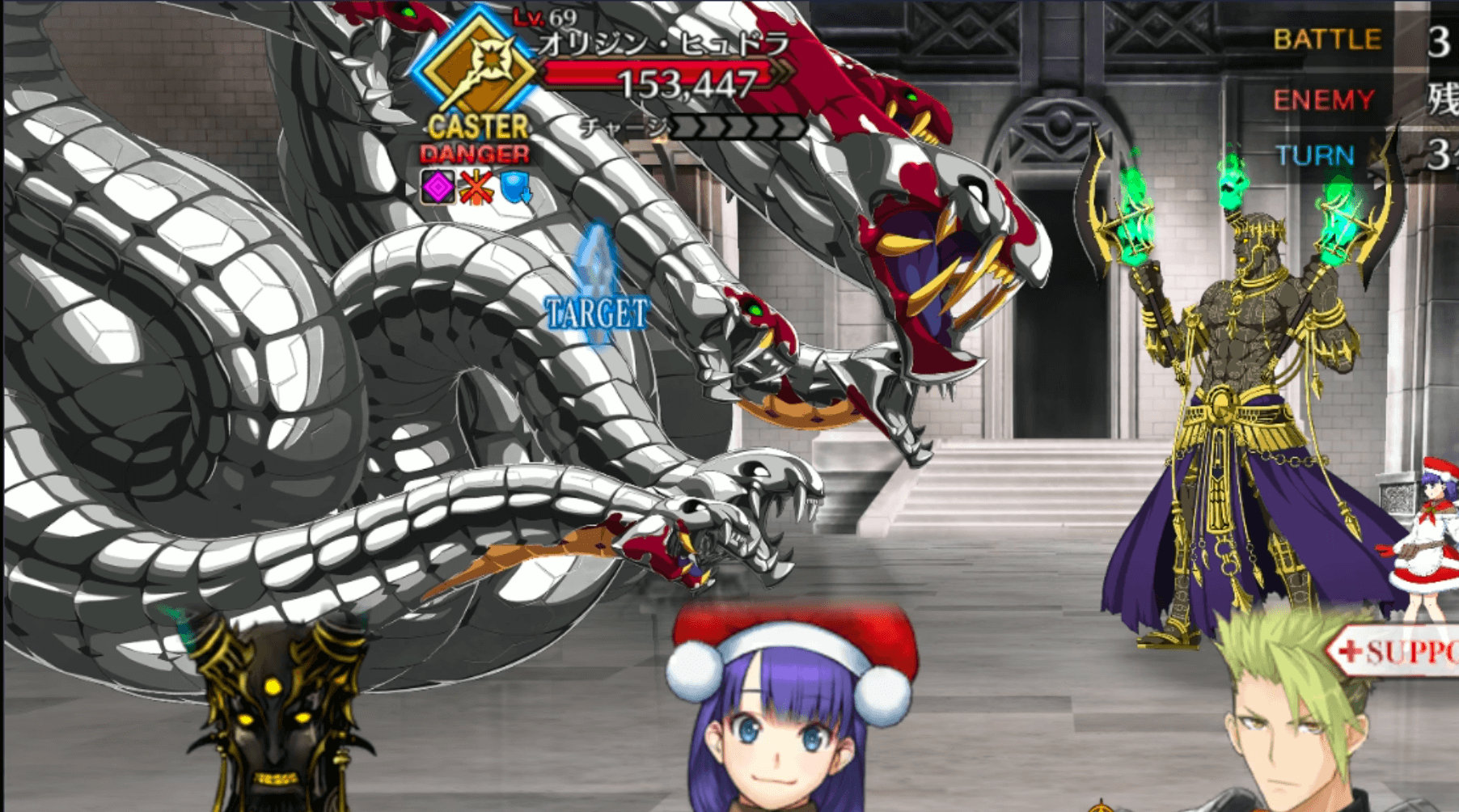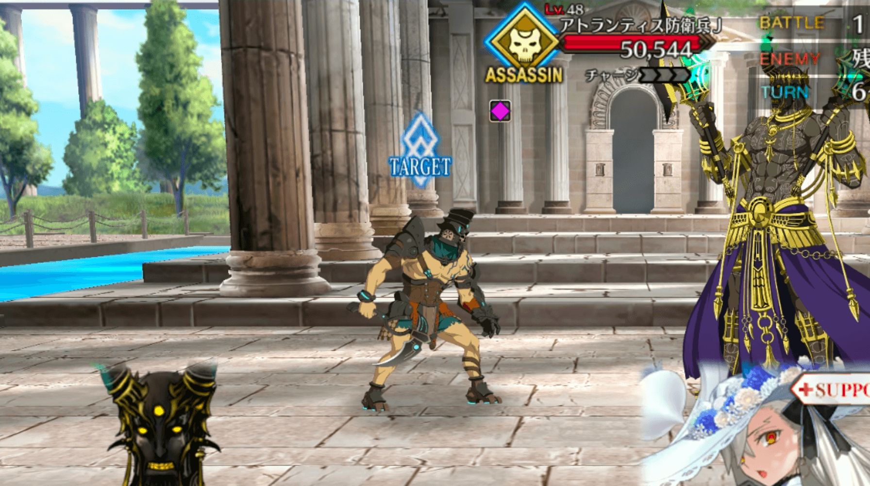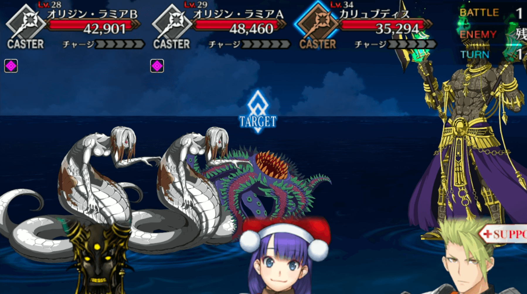 敵の全滅でクリア。ポセイドンは毎ターンチャージが1増加する。ケイローンは生存中、さまざまなバフを全体に配り、ブレイク後は自身にガッツを付与するため非常にしぶとい。