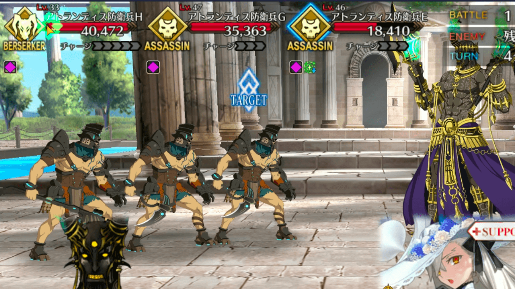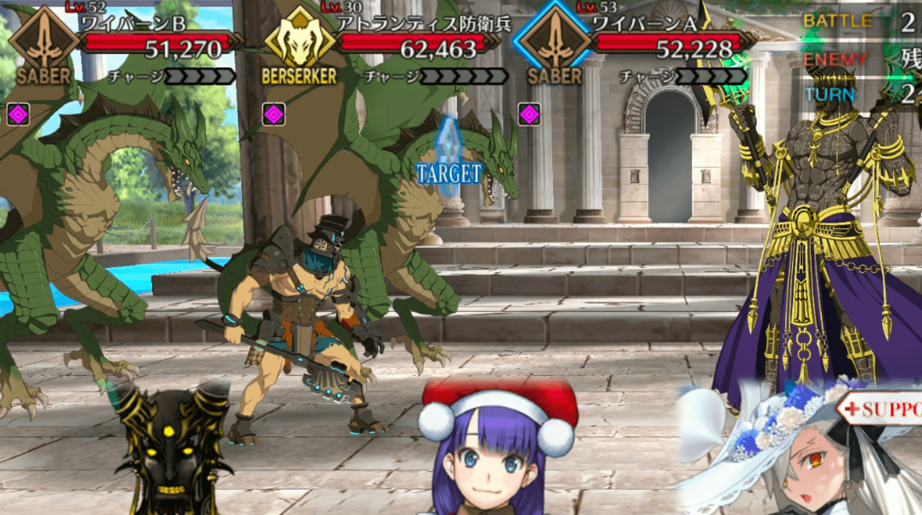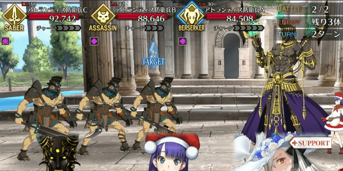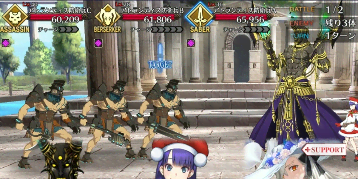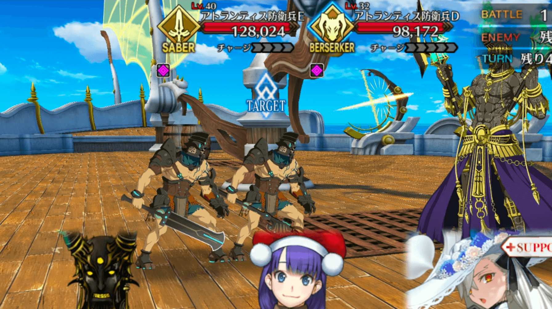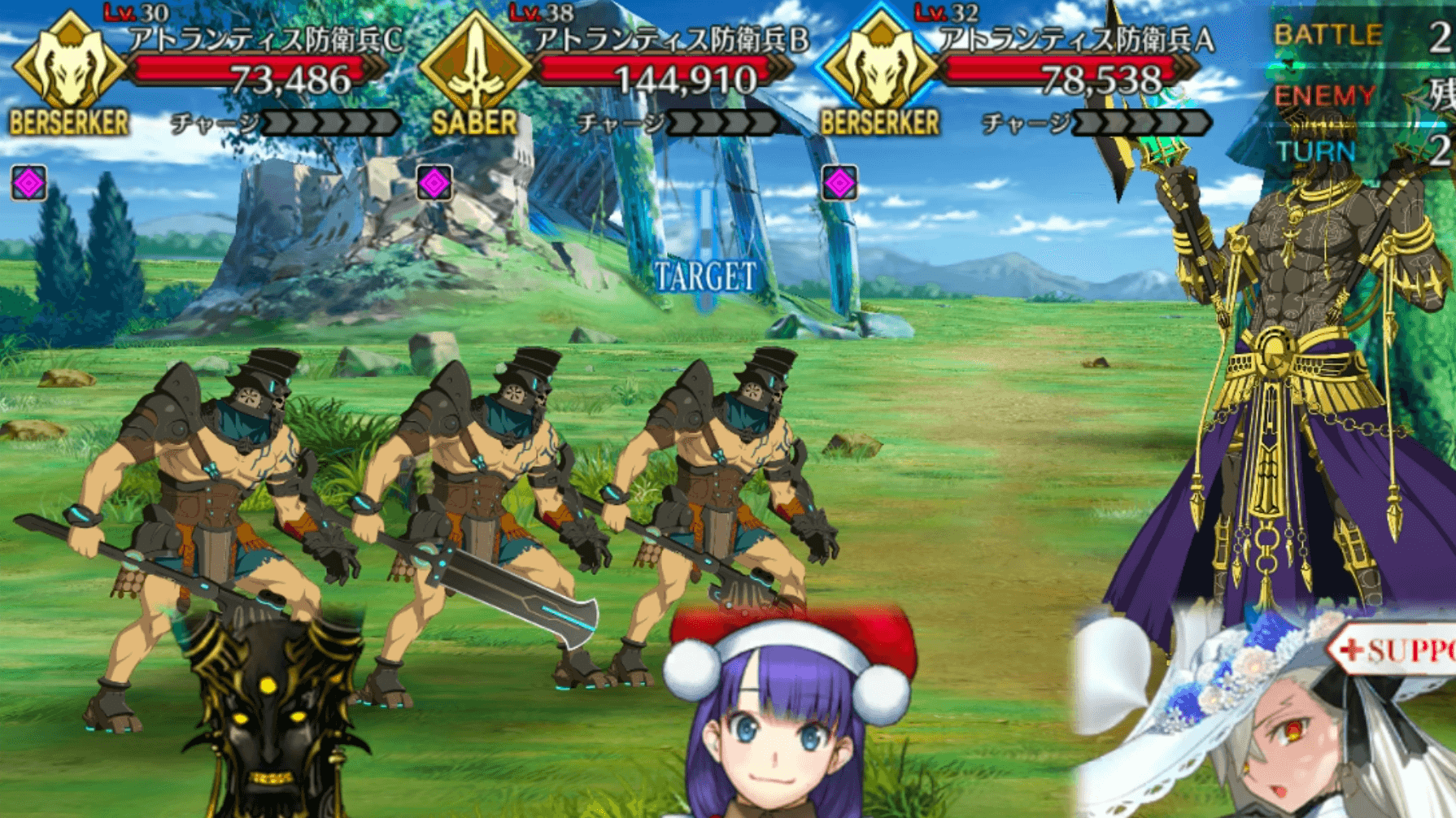 アトランティスの攻略では、手持ちの戦力からセイバーを育成しておくのがおすすめ。サポートにフレンドのサーヴァントを借りられない場面で、ランサーに対してクラス有利のセイバーが有効となる。