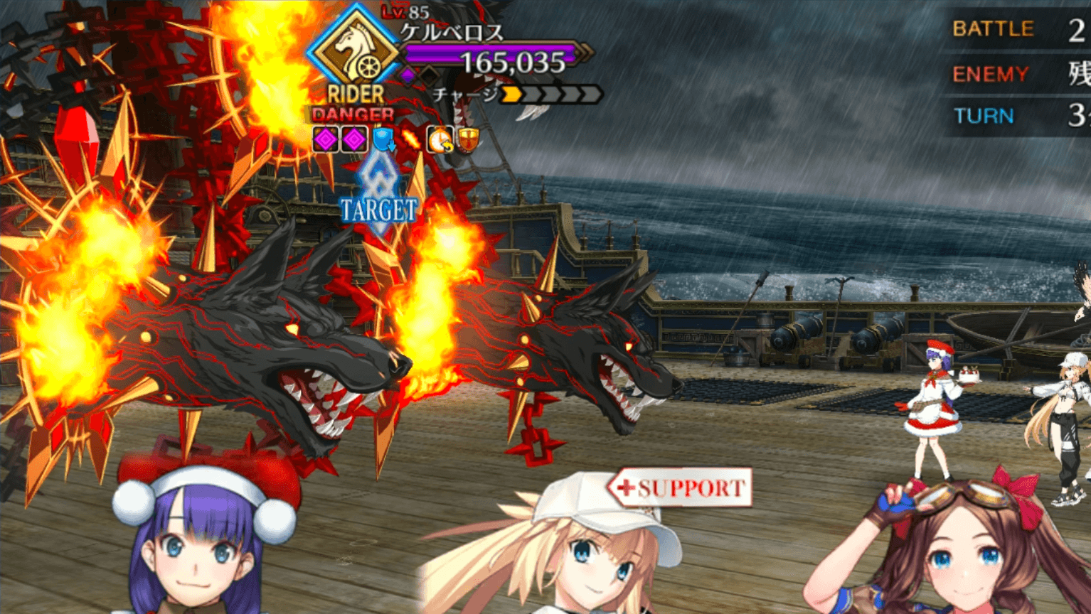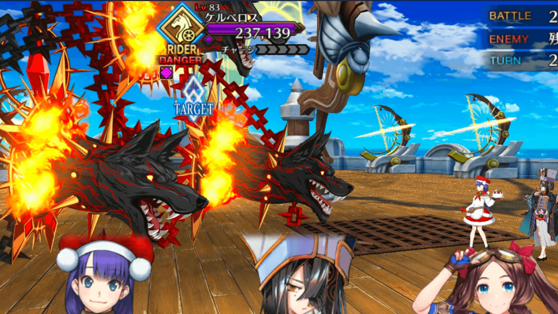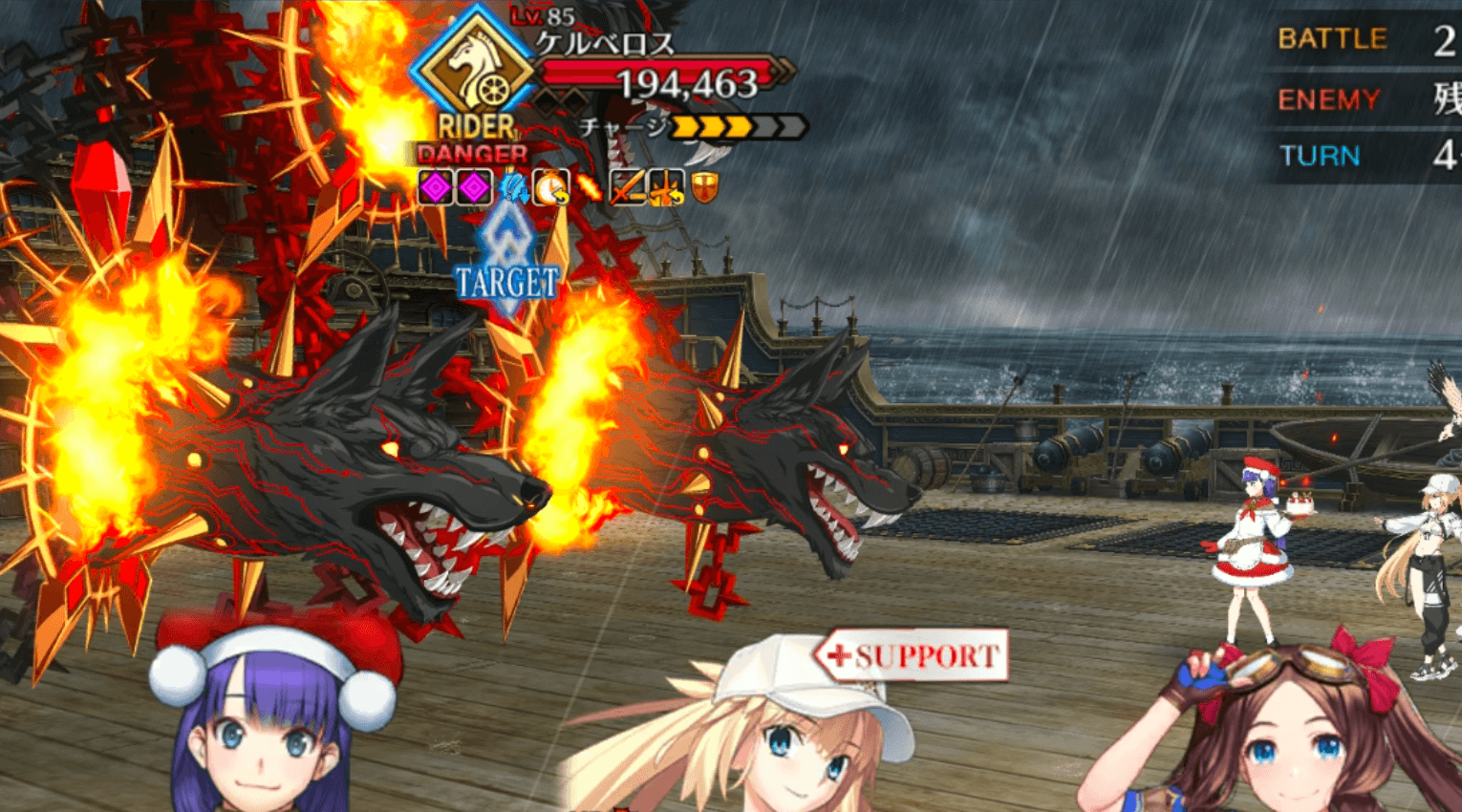 敵の全滅でクリアとなる。ケルベロスは行動不能や宝具封印が無効である。