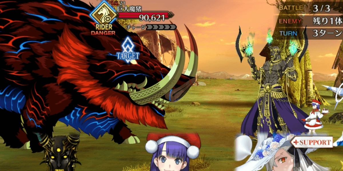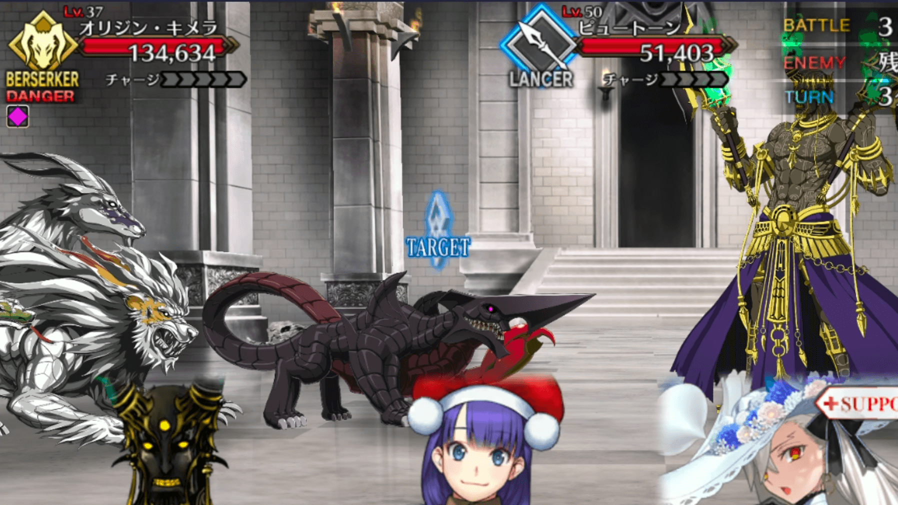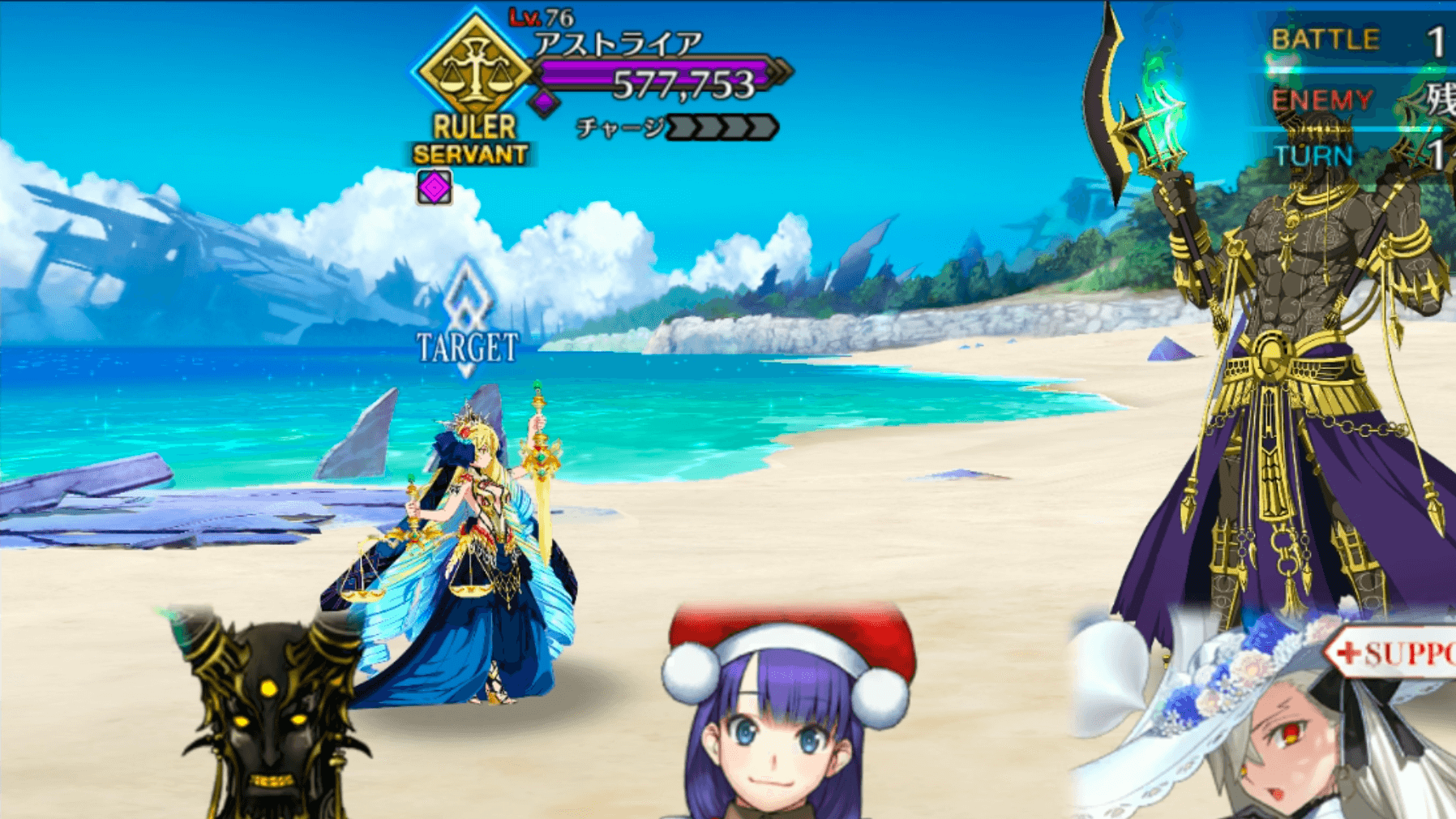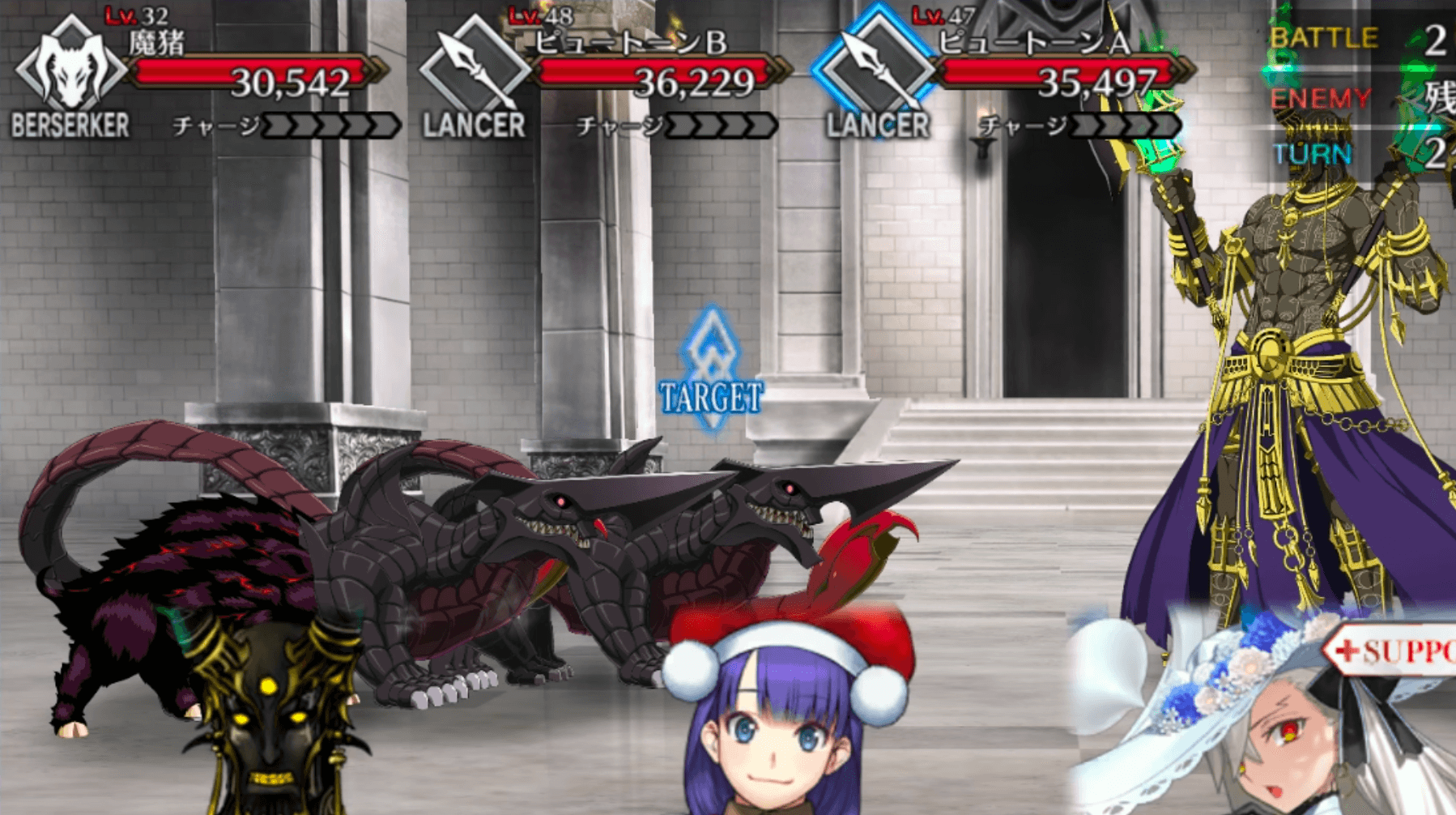 サポート枠を借りられるバトルであるため、ムーンキャンサーの玉兎を借りて攻略しよう。玉兎は、宝具を連射しやすいうえ、敵に有効な天特攻宝具を持つ。加えて、敵が使用する無敵に対しても対策も可能なサーヴァントだ。