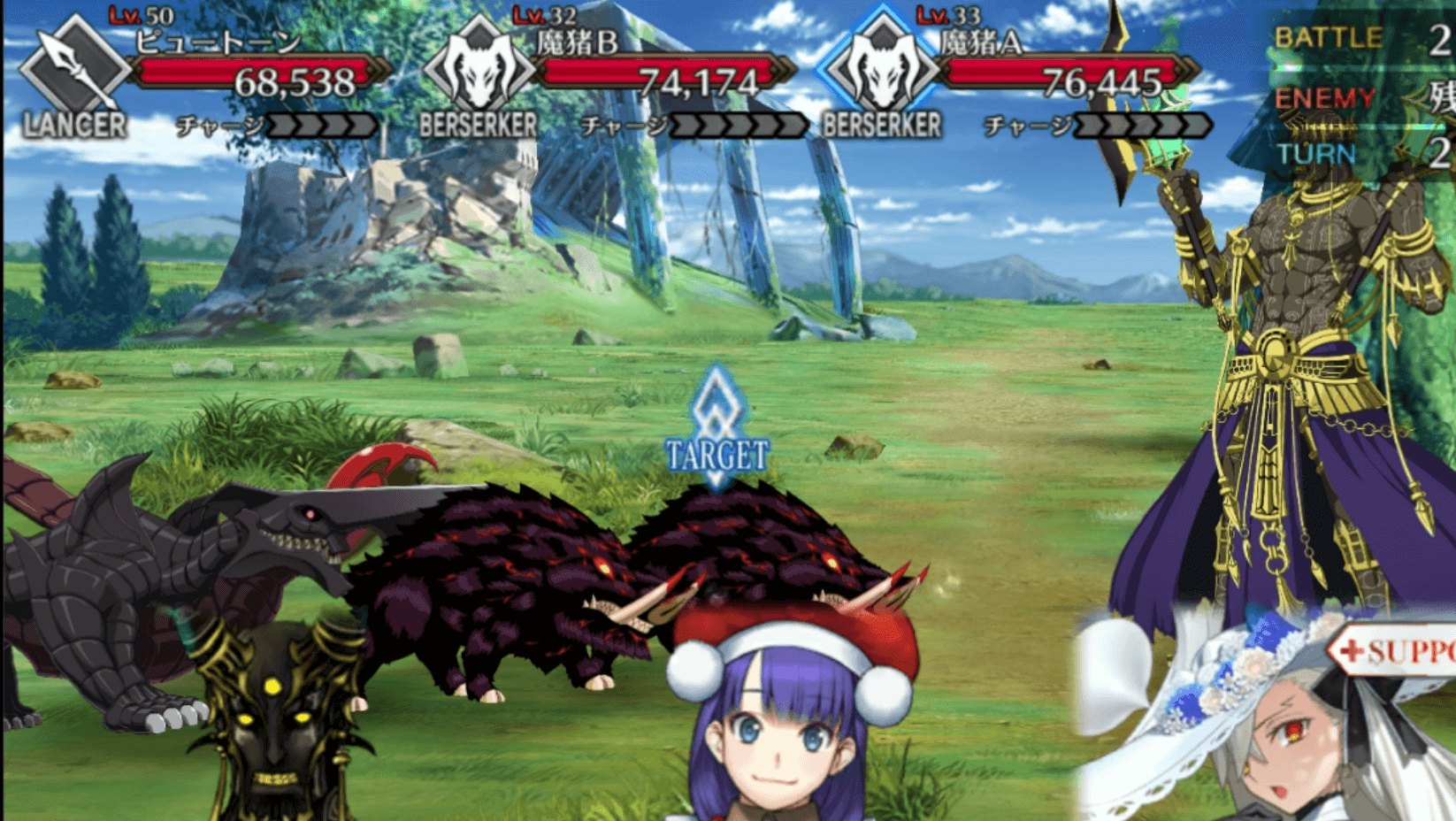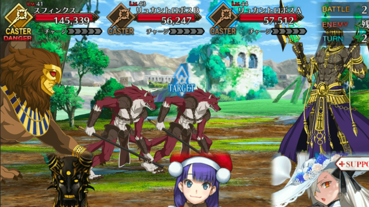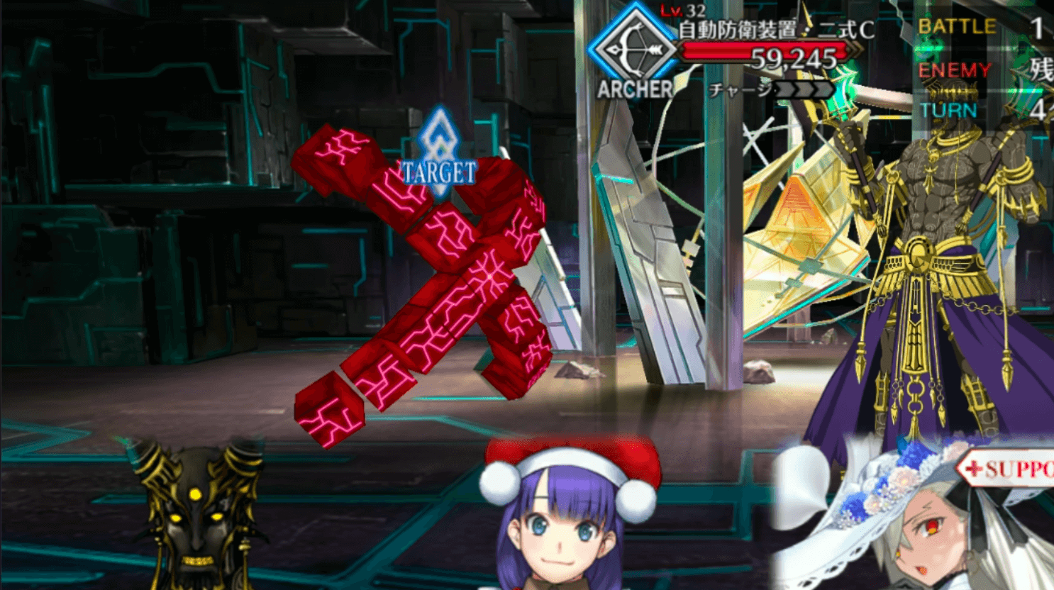 サポート枠を借りられるバトルであるため、ムーンキャンサーの玉兎を借りて攻略しよう。玉兎は、宝具を連射しやすいうえ、敵に有効な天特攻宝具を持つ。加えて、敵が使用する無敵に対しても対策も可能なサーヴァントだ。