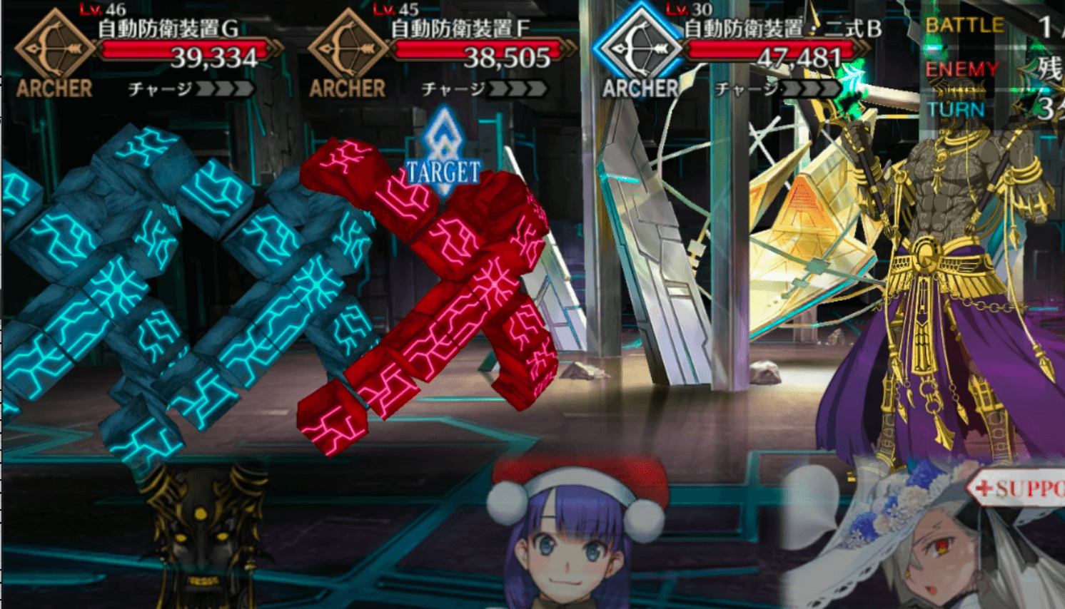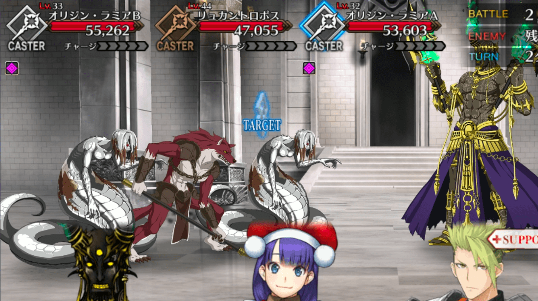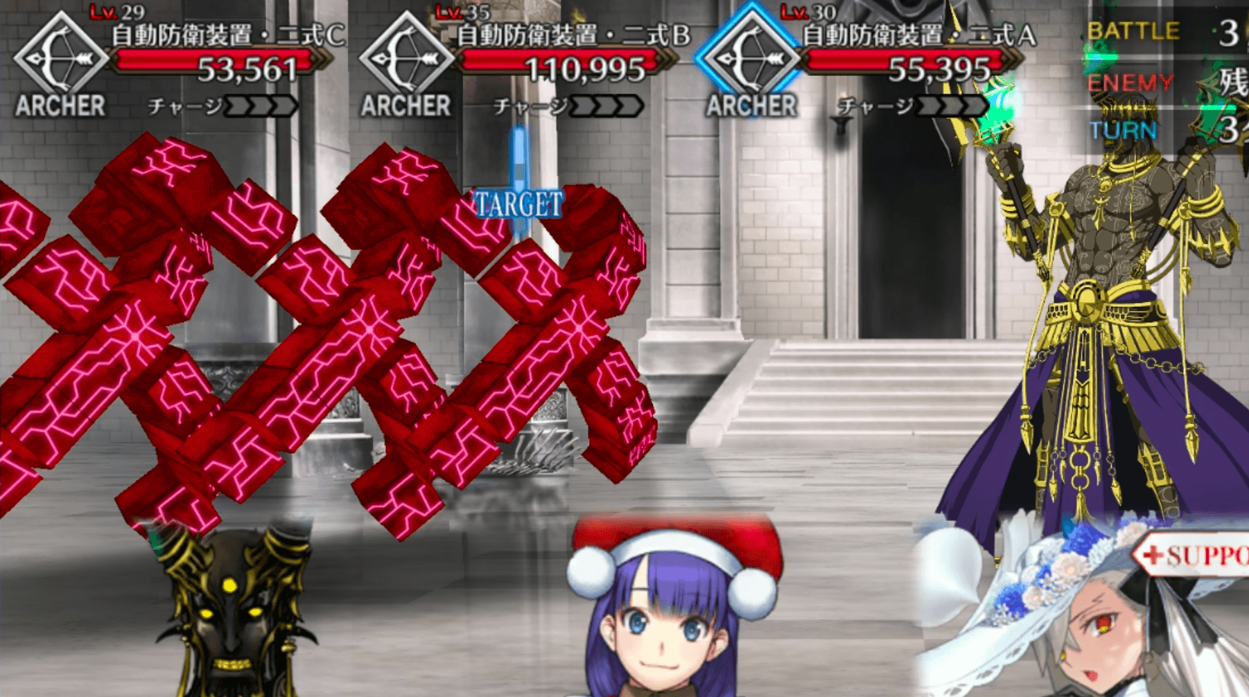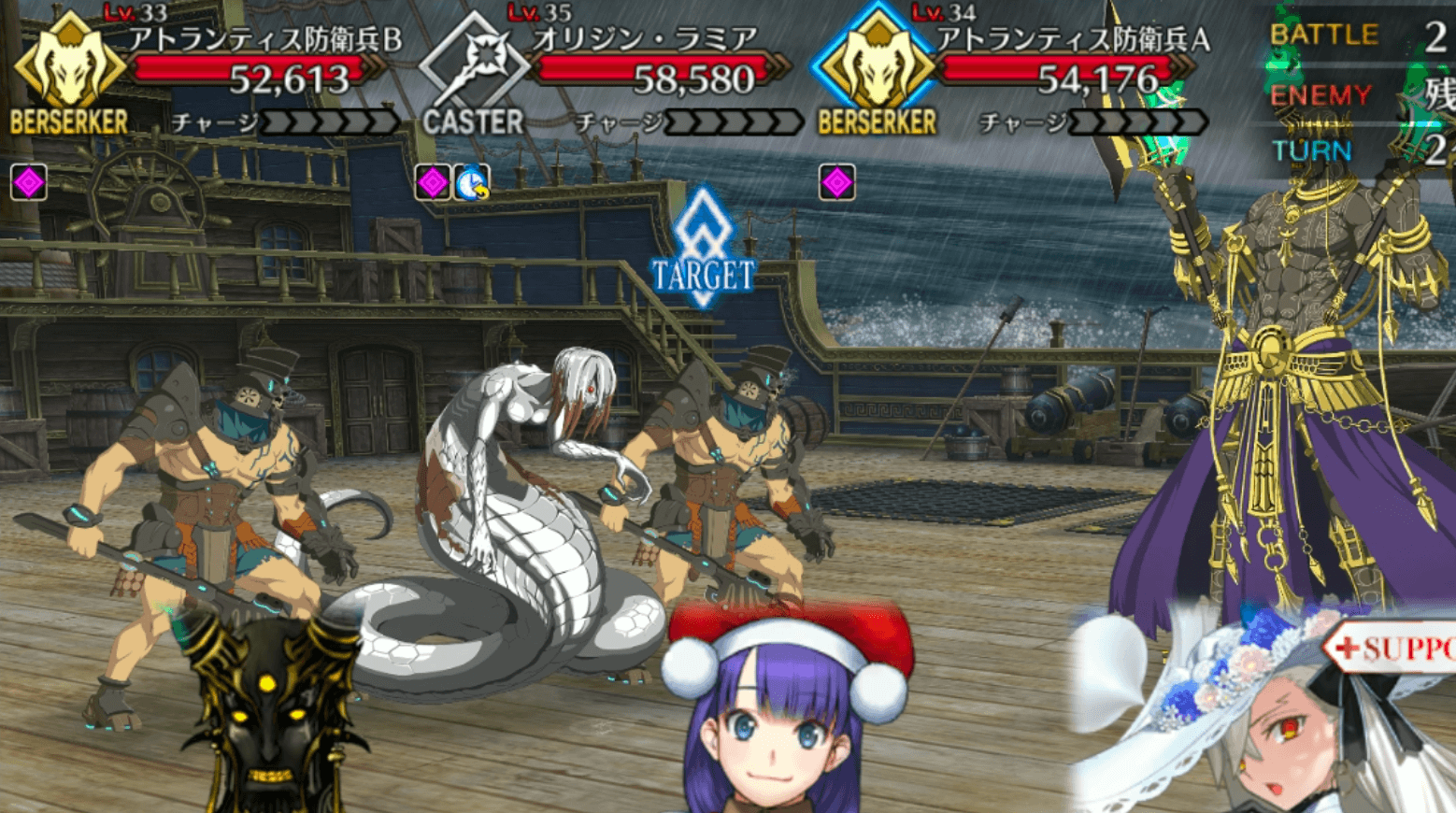 サポート枠を借りられるバトルであるため、ムーンキャンサーの玉兎を借りて攻略しよう。玉兎は、宝具を連射しやすいうえ、敵に有効な天特攻宝具を持つ。加えて、敵が使用する無敵に対しても対策も可能なサーヴァントだ。