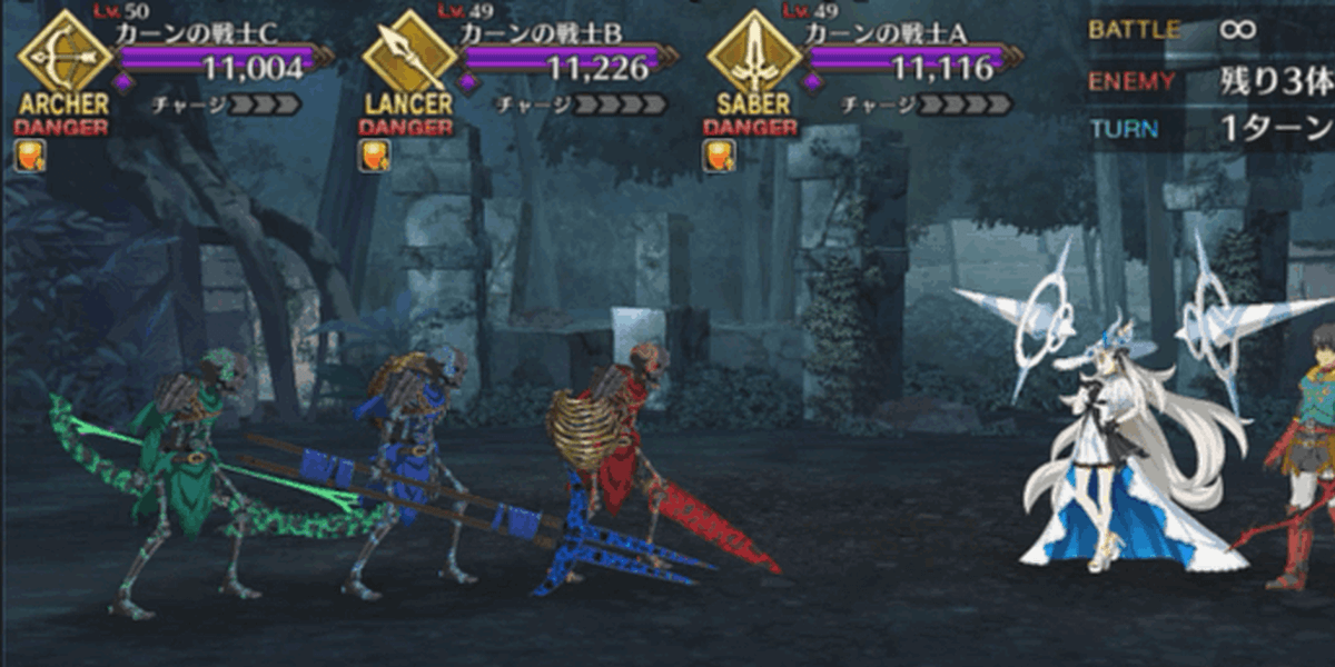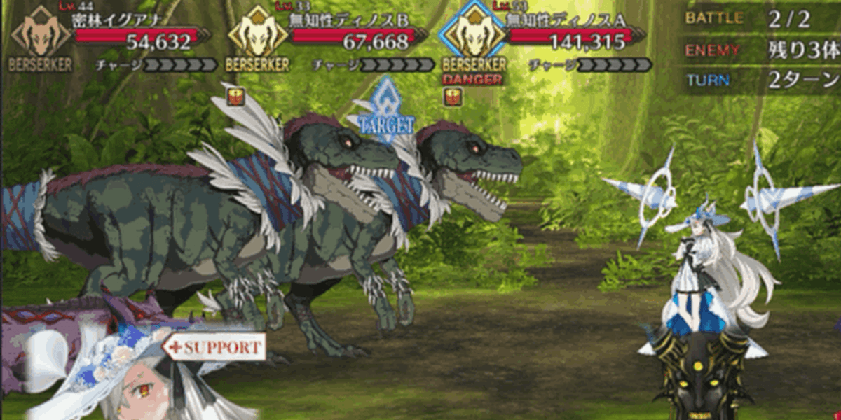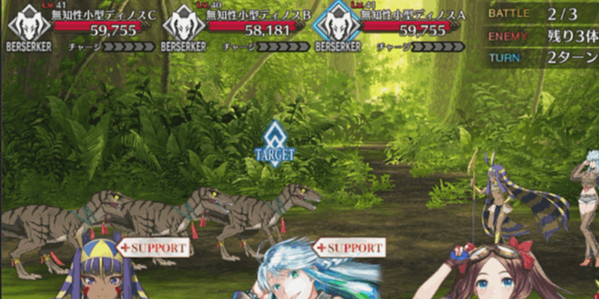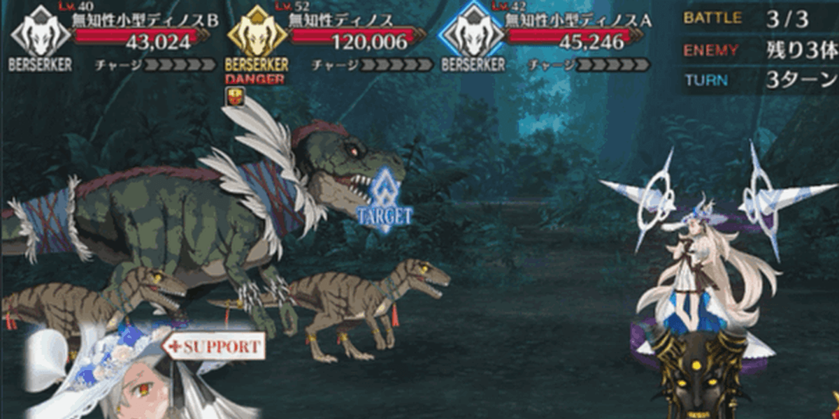 敵の無知性ディノスの無敵対策に無敵貫通があると楽だが、NPCのククルカンが無敵貫通持ちのため、自前で用意しなくても良い。ただし、NPCのククルカンは宝具を使用できない状態であるため、効率的にクリアするならグレイなどを編成して全体宝具を使用していくと良い。