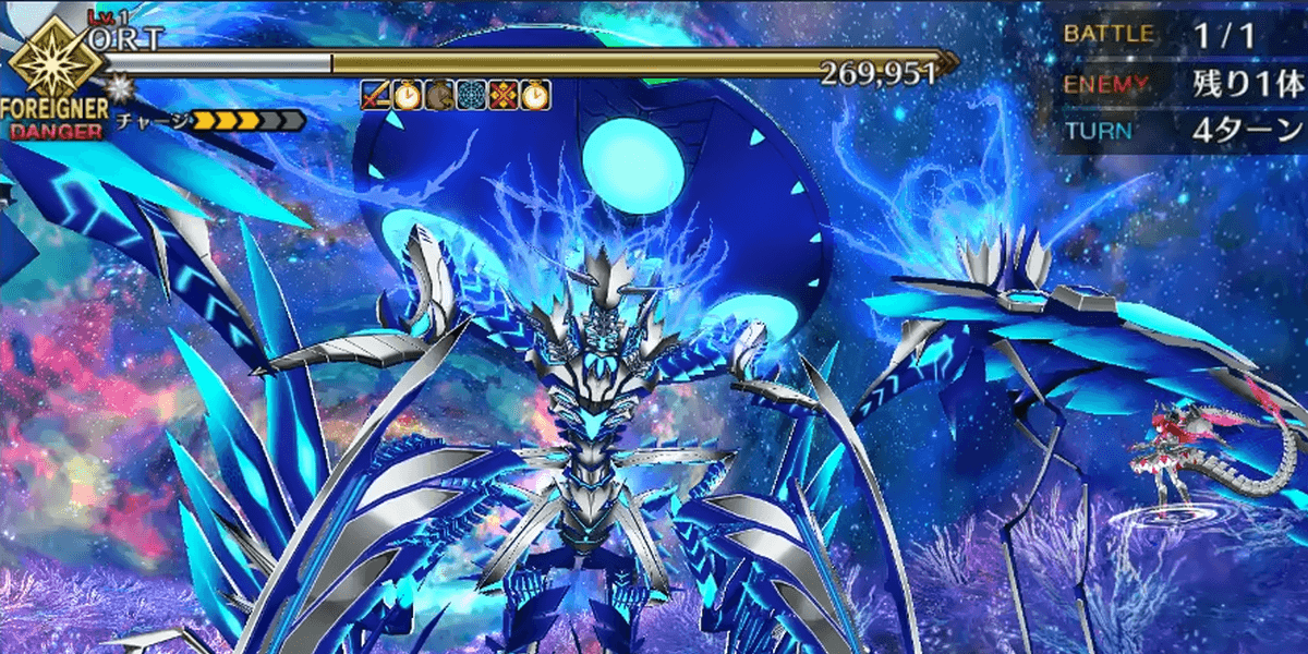 ORTは第21節内の進行度1も含めて100万のゲージを11本、第22節内は120万のゲージを5本、合計16本のHPゲージを持っている。11本目のブレイクを除き、各ブレイク後はパーティが壊滅するため、同じサーヴァントで複数のゲージを削ることはできない。