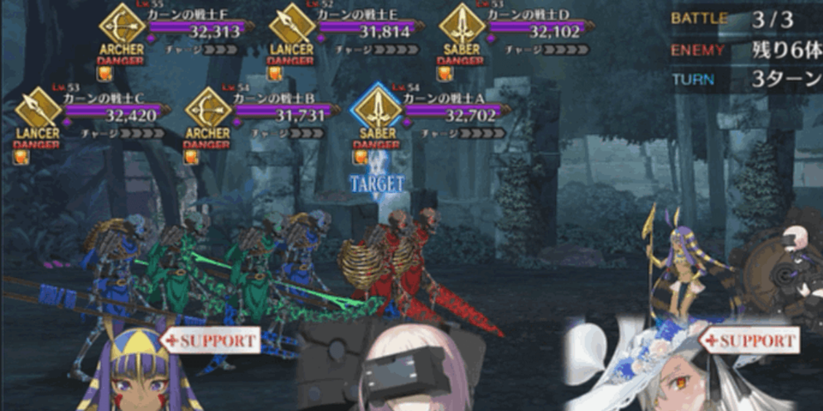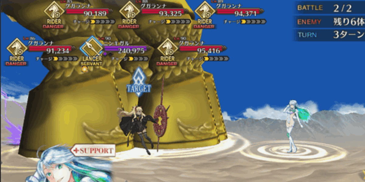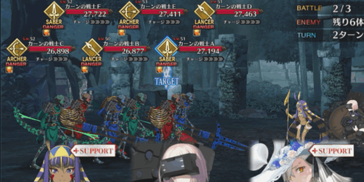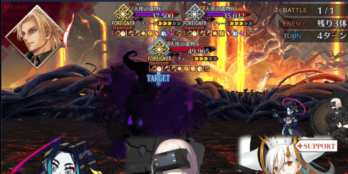 後半は敵のHPが120万に増加し、中盤の支援効果もなくなるため、育成した単体宝具アタッカーで着実にダメージを与えていこう。マシュ・キリエライト(オルテナウス)も50万前後のHPを削る運用が可能であるため、積極的に編成していこう。
