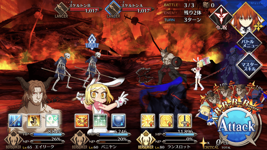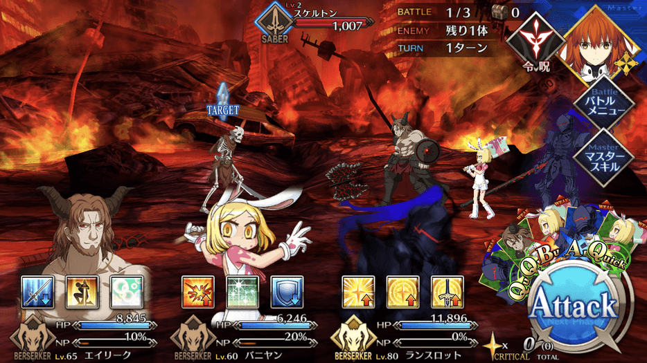 敵は低HPでクラス相性を考慮せずとも攻略しやすいので、手持ちでレベルの高いサーヴァントを編成すると良い。また、冬木のフリクエはクラス混成のクエストが多いので、バーサーカーで固めた編成もおすすめだ。