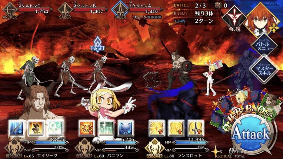 敵は低HPでクラス相性を考慮せずとも攻略しやすいので、手持ちでレベルの高いサーヴァントを編成すると良い。また、冬木のフリクエはクラス混成のクエストが多いので、バーサーカーで固めた編成もおすすめだ。
