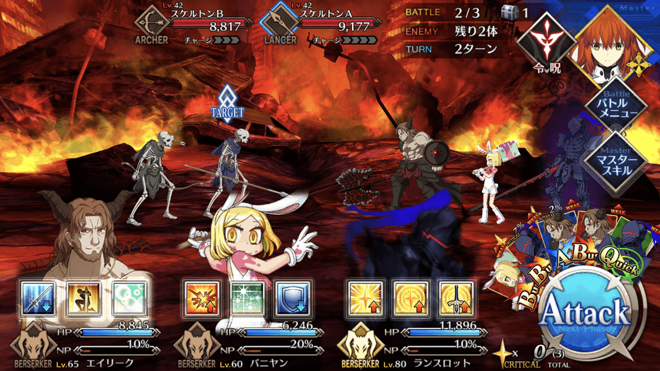 敵は低HPでクラス相性を考慮せずとも攻略しやすいので、手持ちでレベルの高いサーヴァントを編成すると良い。また、冬木のフリクエはクラス混成のクエストが多いので、バーサーカーで固めた編成もおすすめだ。