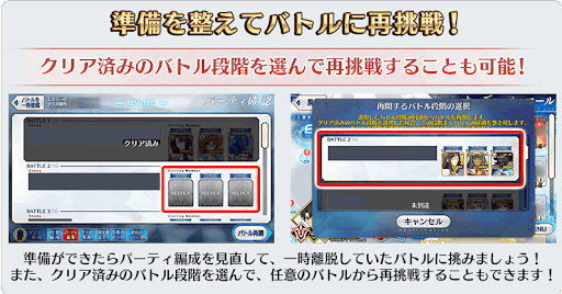 | 1T | 前提・水着武蔵のカードがB含む2枚以上配布 ┗なければ「リトライ>指定バトル段階まで戻る」or「一時離脱する」を選択 |